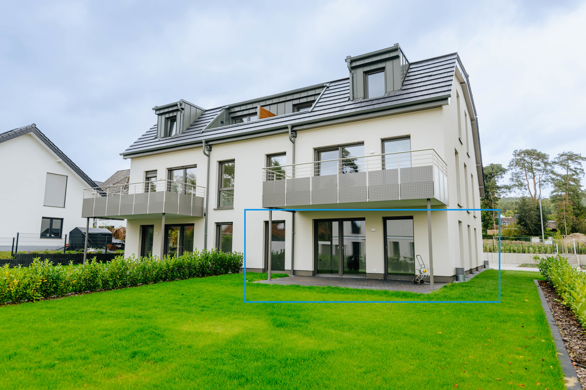Erstbezug in stylischer Neubauwohnung mit "KfW 40 EE Standard", Terrasse & Garten oder großzügigem Balkon. Hochwertige Ausstattung in moderner Architektur, Komfort durch Barrierefreiheit und eine ausgezeichnete Energieeffizienz. Ideal für alle, die Wert auf Qualität, Design und geringe Nebenkosten legen. Technische Highlights im Überblick: - Modernste Haustechnik und optimale Wärmedämmung - Personenaufzug auf jede Ebene - PV-Anlage - Luft-Wasser-Wärmepumpe - Fußbodenheizung - 3-Fach-Wärmefunktions- und Isolierverglasung - elektrische Raffstores an allen Fenstern Helles und offenes Wohnkonzept: Der großzügige Wohn- Ess- und Kochbereich mit direktem Zugang zur Terrasse mit Gartenanteil schafft Lebensqualität. Das Schlafzimmer lässt sich perfekt möblieren und das dritte Zimmer bietet weitere, vielseitige Nutzungsmöglichkeiten als Büro, Gäste- oder Kinderzimmer. Wohndetails und Ausstattungsmerkmale: - Fester Kfz-Stellplatz vor dem Haus - Hochwertiger und pflegeleichter Vinylboden sowie großformatige Fliesen - Bodentiefe Fenster - Stilvolles Bad mit ebenerdiger Dusche - Gäste WC - Eigener Kellerraum Diese Wohnung bietet nicht nur ein modernes und stilvolles Ambiente, sondern überzeugt auch durch ihre energetische Bauweise und ihre durchdachte Ausstattung – ideal für alle, die Nachhaltigkeit mit Wohnkomfort verbinden möchten.
