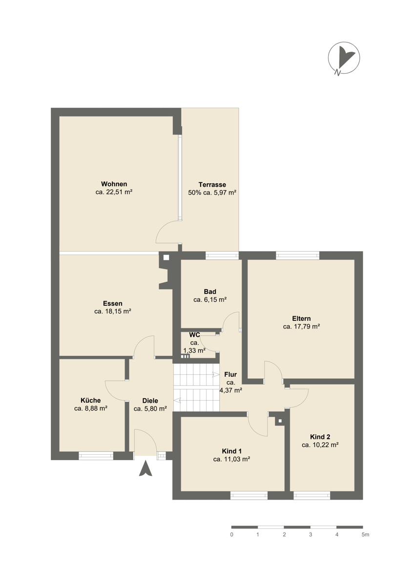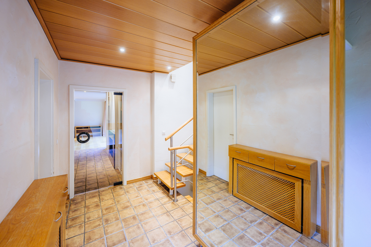 Dieses verklinkerte Reihenendhaus hat vieles zu bieten. Charmant auf verschiedenen Ebenen aufgeteilt, bietet es im Erdgeschoss einen gemütlichen Wohn- Essbereich mit Kaminofen und bodentiefem Schiebeelement mit Zugang zur südlich ausgerichteten Terrasse. Von dort hat man einen schönen Blick in den nicht einsehbaren Garten. Die Küche liegt separat neben dem Wohnbereich. Über ein paar Stufen erreicht man den privaten Bereich bestehend aus 3 Zimmern sowie dem Bad mit angrenzendem Gäste-WC. Die Räume sind gut belichtet und haben eine angenehme Raumhöhe. Im Souterrain steht ein sehr wertig nutzbarer Raum sowie praktische Abstellfläche in drei weiteren Kellerräumen zur Verfügung. Eine Garage gehört ebenfalls zum Angebot.Location