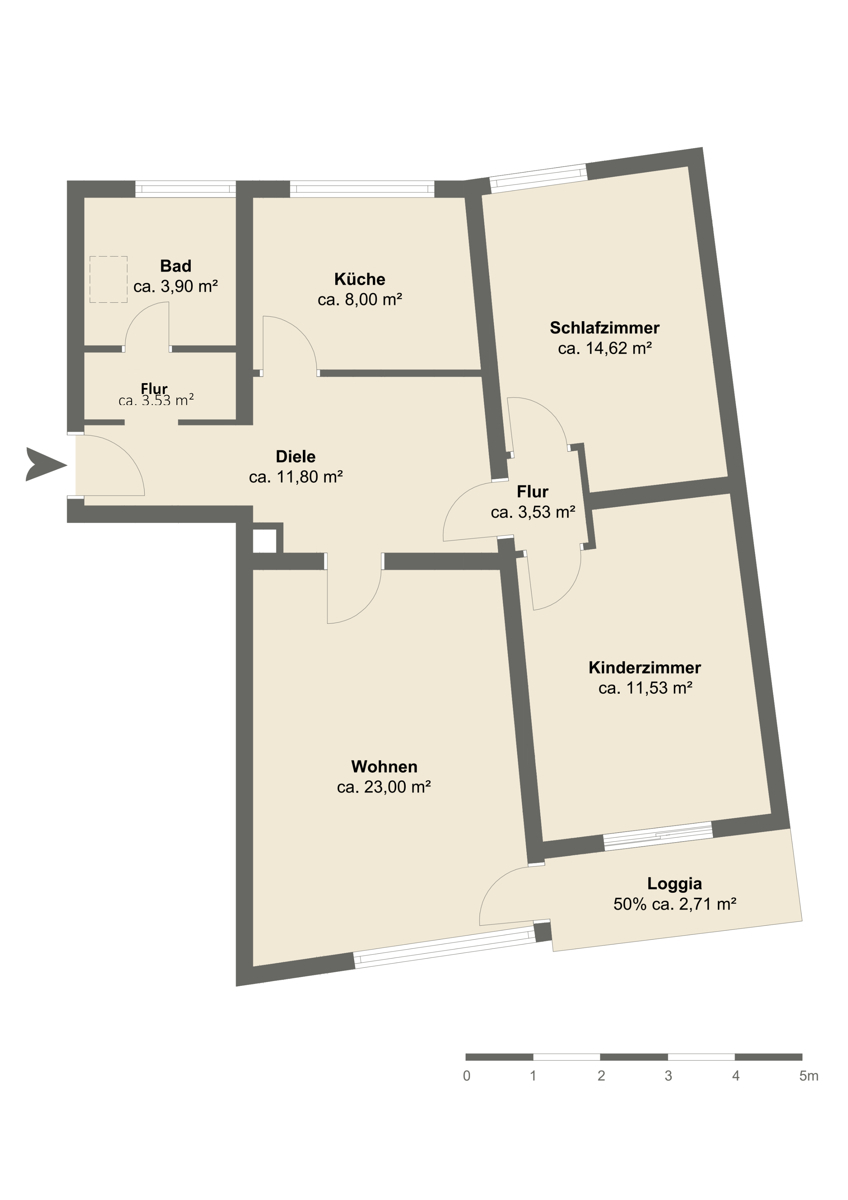 Diese gepflegte 3-Zimmer Wohnung überzeugt durch ihren guten Zustand und einer durchdachten und geschickten Raumaufteilung – ideale Voraussetzungen für einen gelungenen Start. Beim Betreten der Wohnung empfängt Sie eine großzügige und helle Diele, die sofort ein einladendes Wohngefühl vermittelt. Der gemütliche Wohn- und Essbereich bietet direkten Zugang zum Süd-Balkon. Über einen separaten kleinen Flur erreicht man zwei weitere gut geschnittene Zimmer, die sich flexibel als Schlaf-, Kinder- oder Arbeitszimmer nutzen lassen. Die Küche punktet mit großen Fenstern und einem schönen Blick ins Grüne. Leichtbauelemente aus Glas und Holz zwischen Küche und Flur lassen viel Tageslicht in die gesamte Wohnung. Ein weiterer Flurbereich führt zum Tageslichtbad mit Dusche. Hier befindet sich auch ein praktischer Einbauschrank, der zusätzlichen Stauraum bietet.Location