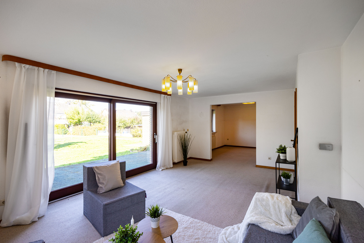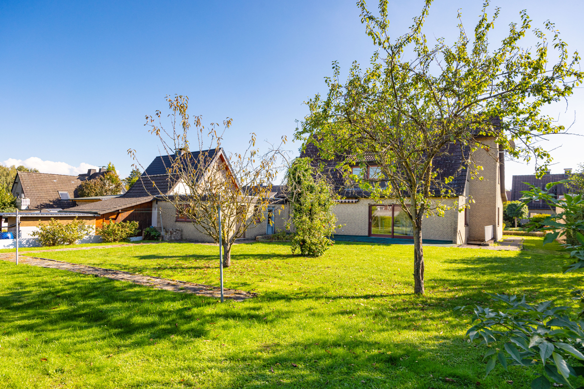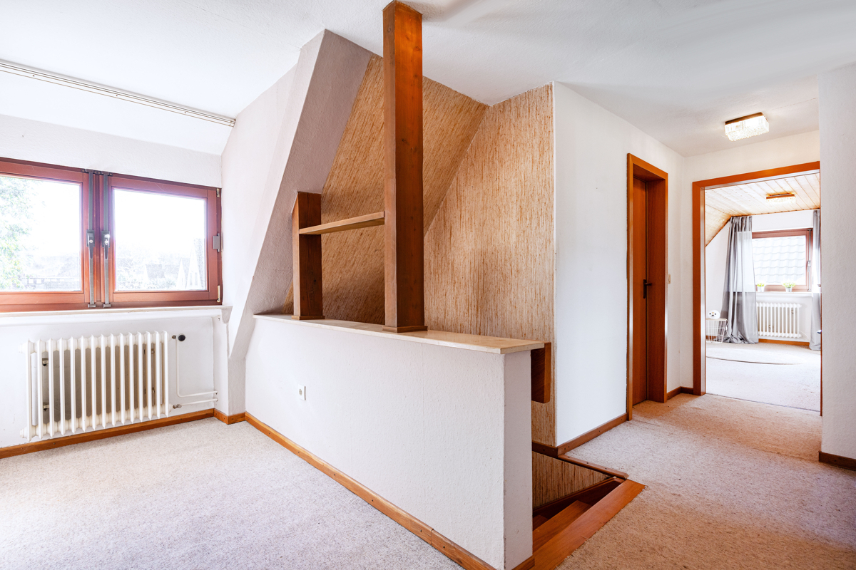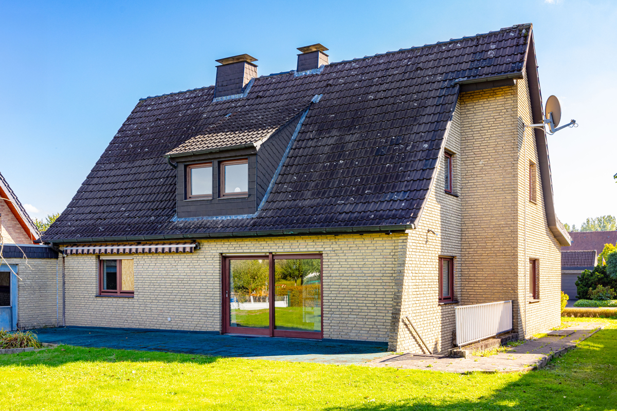 Diese familienfreundliche Immobilie überzeugt auf ganzer Linie – nicht nur durch ihre großzügige Grundstücksfläche und die durchdachte Zimmeraufteilung, sondern auch mit ihrer soliden Bausubstanz eine ideale Grundlage für die Neugestaltung Ihres Zuhauses. Das weitläufige Grundstück mit seiner Süd-West-Ausrichtung lässt den ganzen Tag über die Sonne ins Haus strahlen und bietet Ihnen den perfekten Raum, um Ihre Vorstellungen von einem harmonischen Leben im Freien zu verwirklichen. Die gelungene Raumaufteilung schafft eine einladende Atmosphäre, in der jeder seinen eigenen Rückzugsort findet. Besonders der helle Wohn-/Essbereich, der durch das Zusammenlegen von zwei Räumen einen offenen, modernen Charakter erhält, ist der perfekte Ort für gemeinsame Stunden mit der Familie oder Freunden. Direkt gegenüber befindet sich die Funktionsküche. Besonders hervorzuheben sind die zwei weiteren Räume im Erdgeschoss - gut nutzbar als Büro-/Gästebereich ergänzt durch ein Badezimmer und ein Gäste-WC. Im Obergeschoss liegen drei großzügige Schlaf- bzw. Kinderzimmer sowie zwei funktionale, baujahrestypische Badezimmer – eines ausgestattet mit Badewanne, das andere mit Dusche. Vielfältige Nutzungsmöglichkeiten: als Hobbybereich oder zusätzlicher Stauraum schafft der Vollkeller.Location