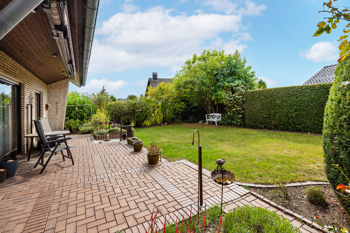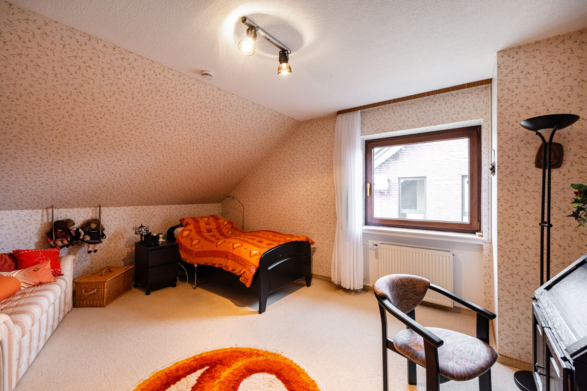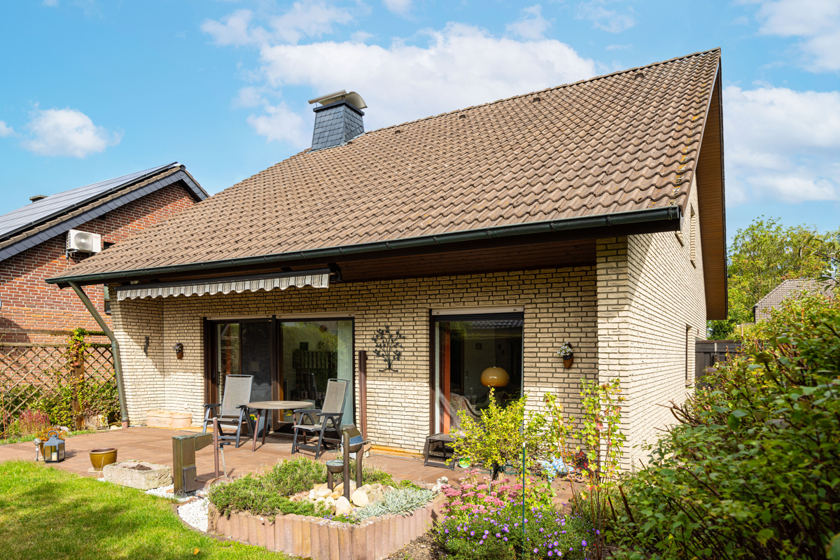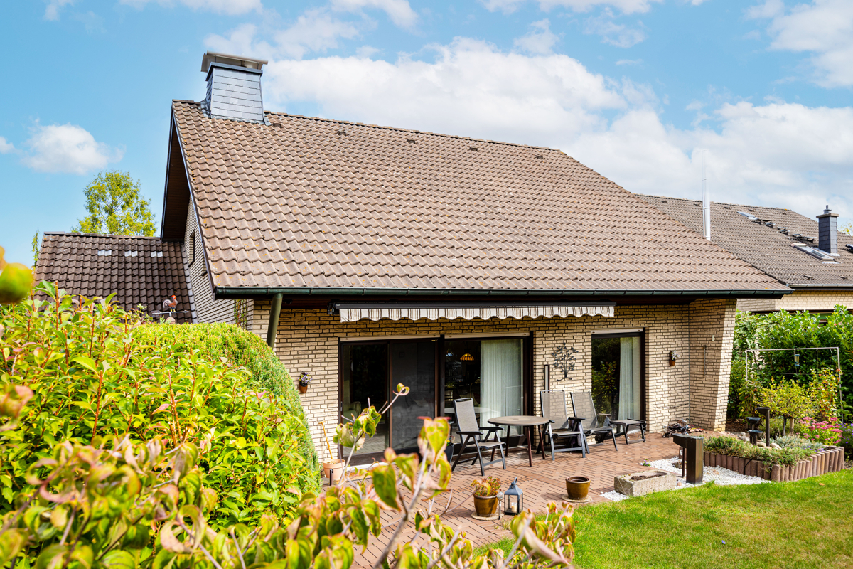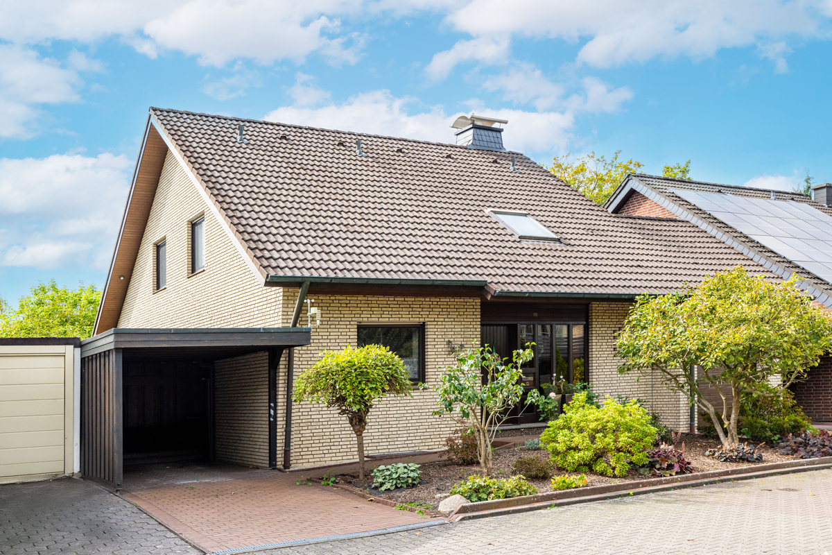Ein verklinkertes Einfamilienhaus, schön gelegen in einer ruhigen und familienfreundlichen Nachbarschaft - ideal für Ihren Start ins Eigenheim. Mit 144 m² Wohnfläche bietet das Haus eine sinnvolle Raumaufteilung und kann durch kleinere Modernisierungen zügig in ein aktuelles Zuhause umgewandelt werden. Der helle und luftige Wohn-/Essbereich mit großer Fensterfront und ebenerdiger Schiebetür ermöglicht direkten Zugang zur Terrasse. Ausgestattet mit einer elektrischen Markise bietet die Südwest-Terrasse beste Voraussetzungen für entspannte Stunden im hübschen Garten. Im Obergeschoss befinden sich zwei helle Schlafzimmer, das große Bad mit Wanne und Dusche sowie ein individuell gestaltbarer Raum – perfekt für Eltern, Kinder oder einen HomeOffice-Bereich. Einen weiteren, wohnlich ausgebauten Raum bietet der Vollkeller, der sich gut als Hobbyraum. Ergänzt wird dieses Angebot durch ein Carport und eine praktische Garage, ausgestattet mit einer Pumpe für das Regenwassersystem im Garten.Location