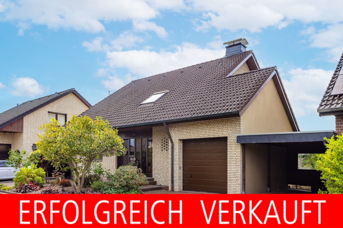 Ein verklinkertes Einfamilienhaus, schön gelegen in einer ruhigen und familienfreundlichen Nachbarschaft - ideal für Ihren Start ins Eigenheim. Mit 144 m² Wohnfläche bietet das Haus eine sinnvolle Raumaufteilung und kann durch kleinere Modernisierungen zügig in ein aktuelles Zuhause umgewandelt werden. Der helle und luftige Wohn-/Essbereich mit großer Fensterfront und ebenerdiger Schiebetür ermöglicht direkten Zugang zur Terrasse. Ausgestattet mit einer elektrischen Markise bietet die Südwest-Terrasse beste Voraussetzungen für entspannte Stunden im hübschen Garten. Im Obergeschoss befinden sich zwei helle Schlafzimmer, das große Bad mit Wanne und Dusche sowie ein individuell gestaltbarer Raum – perfekt für Eltern, Kinder oder einen HomeOffice-Bereich. Einen weiteren, wohnlich ausgebauten Raum bietet der Vollkeller, der sich gut als Hobbyraum. Ergänzt wird dieses Angebot durch ein Carport und eine praktische Garage, ausgestattet mit einer Pumpe für das Regenwassersystem im Garten.Lage