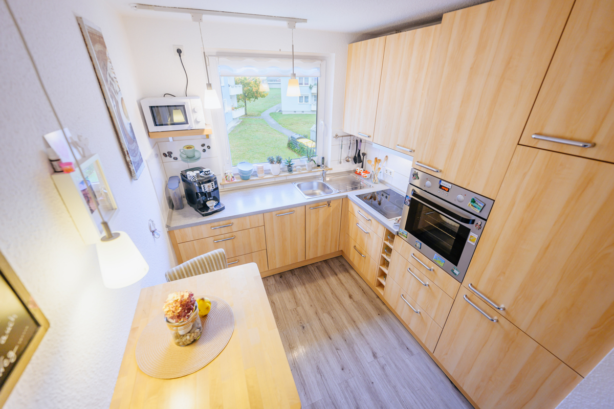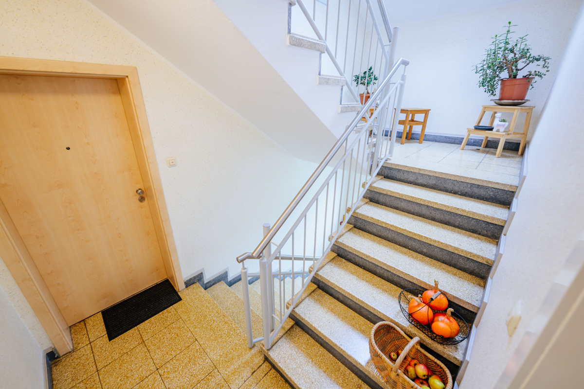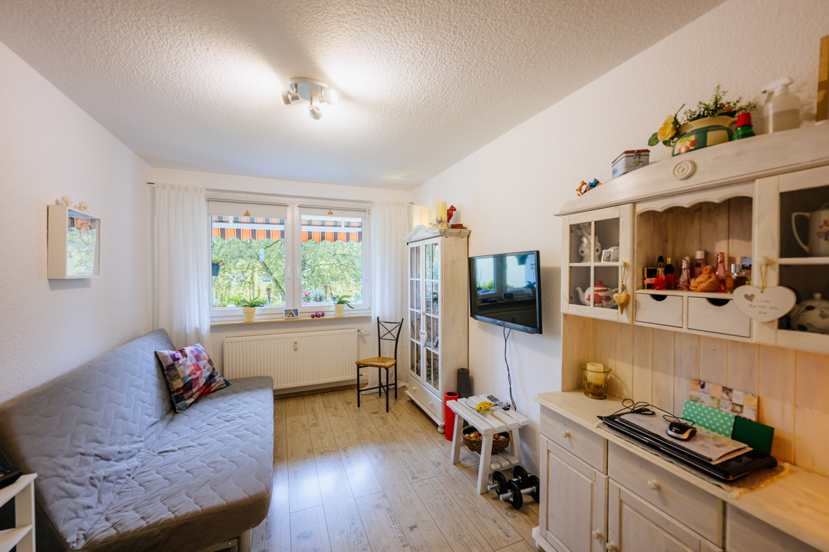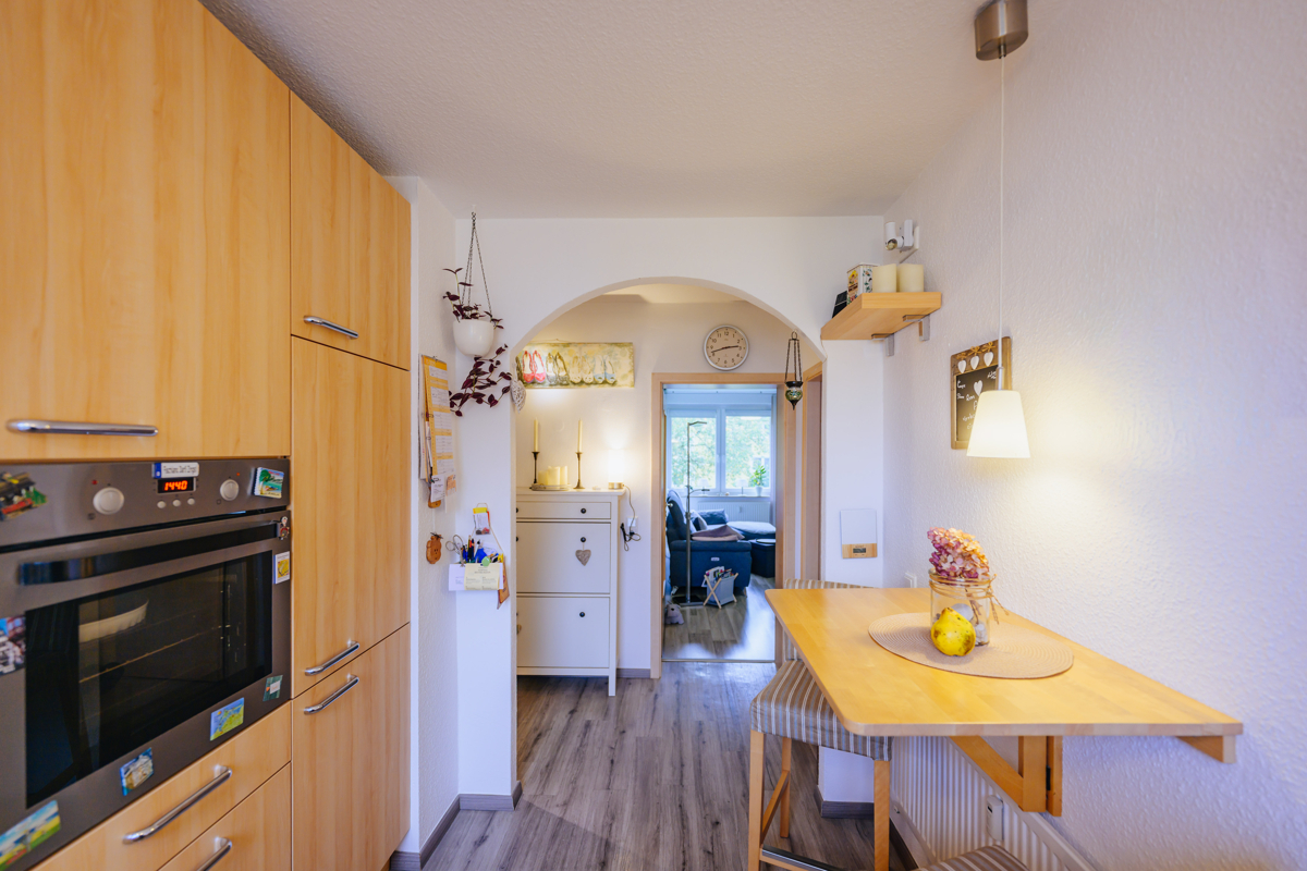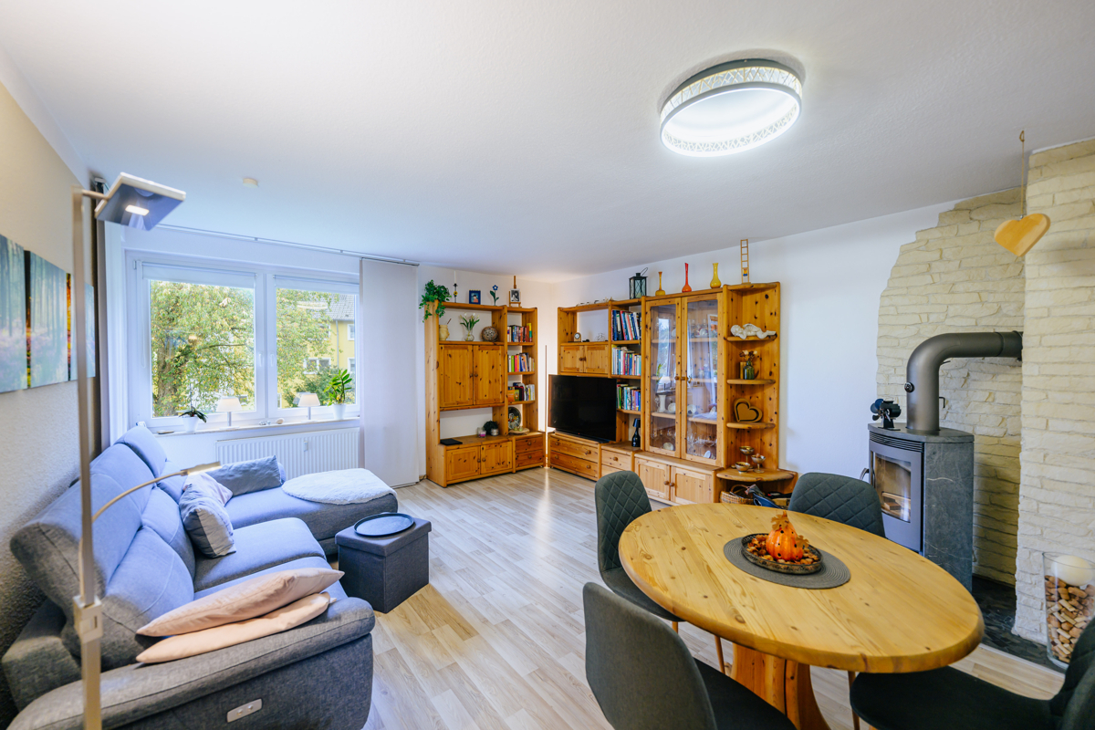 Diese moderne und gepflegte Eigentumswohnung befindet sich in einem ruhigen, gepflegten Gebäude mit nur vier Parteien im Eingang. Die Eigentümergemeinschaft hat bereits in die Zukunft investiert: die Fassade sowie die oberste Geschossdecke des Dachbodens wurden gedämmt und das Gebäude frisch gestrichen. Die Wohnung selbst überzeugt durch ihre gelungene Raumaufteilung. Besonders hervorzuheben ist der Wohnbereich, der mit einem Kaminofen ausgestattet ist – ideal für gemütliche Stunden in kalten Tagen. Außerdem mit direktem Zugang zu der Süd-West-Loggia, die zum grünen, ruhigen Garten ausgerichtet ist. Die offene Küche ist mit einer modernen Einbauküche samt technischer Geräte ausgestattet, die im Kaufpreis enthalten sind. Das Bad ist ebenso modern gestaltet und verfügt über eine ebenerdige Dusche und ein Fenster. Diese Wohnung ist der ideale für all, die eine gepflegte Wohnung in einem ruhigen, grünen Umfeld suchen!Location
