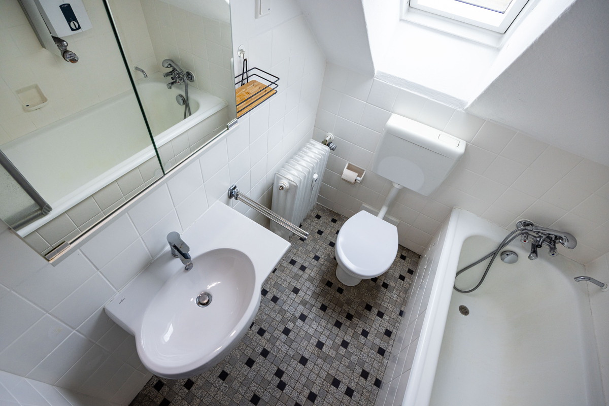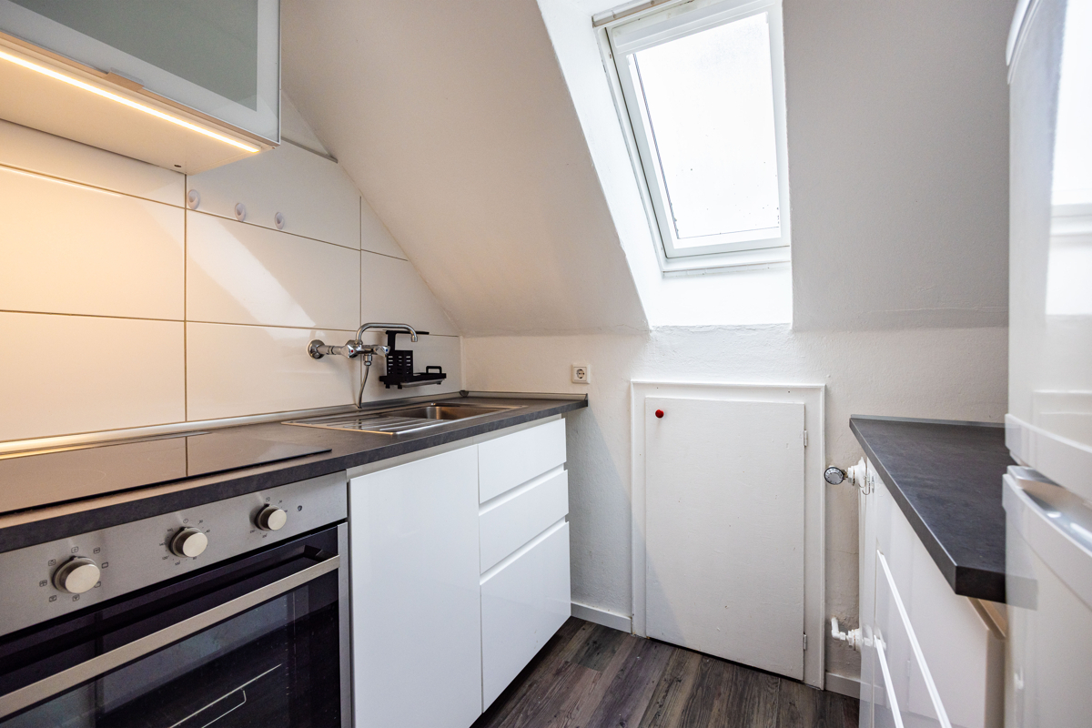 Die gemütliche Dachgeschosswohnung ist perfekt für Singles geeignet, die gern zentrumsnah wohnen möchten. Der große Wohn- Schlafraum ist hell und läßt sich dank des hohen Drempels gut möbilieren und wird durch einen kleineren Raum ergänzt. Die Küche wurde mit einer weißen Einbauküche mit Geräten maßgenau ausgestattet und ist im Kaufpreis enthalten. Das Bad mit Wanne ist hell verfliest und hat ein Fenster. Das Wohn- Schlafzimmer wurde mit Stäbchenparkett ausgestattet, der Flur und das zusätzliche Zimmer mit aktuellem Laminatboden. Ein eigener geräumiger Kellerraum komplettiert das Angebot.Location