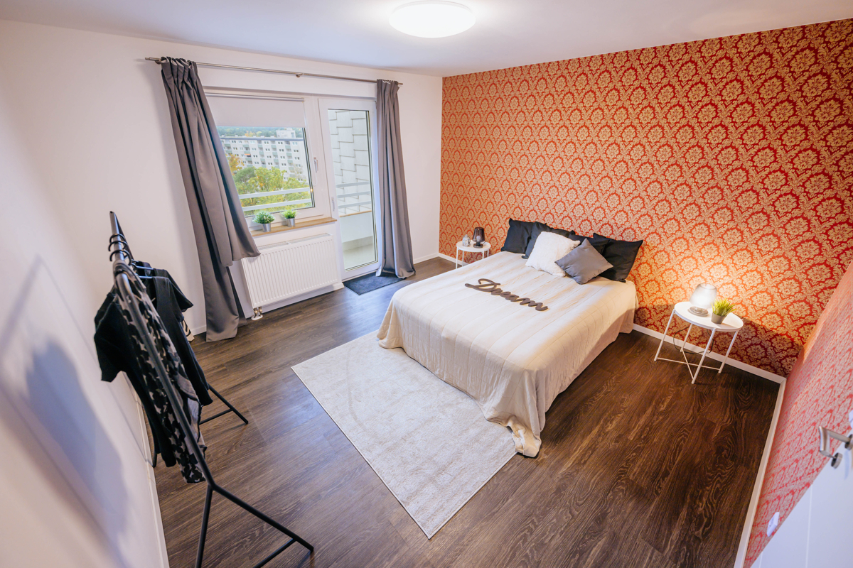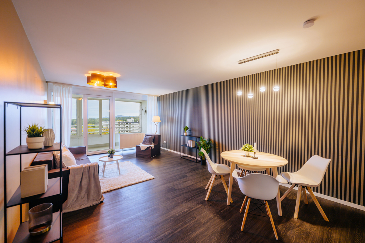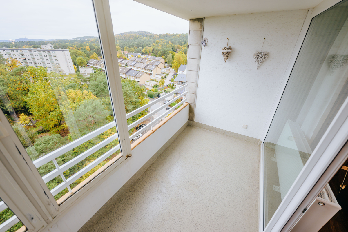 Mit dem Aufzug ins zwölfte und gleichzeitig letzte Geschoss. Die ehemalige 4 Zimmer- Wohnung wurde vor einigen Jahren in eine großzügige 3-Zimmer-Wohnung mit Gäste-WC geschmackvoll und aufwendig umgebaut und präsentiert sich hell und modern mit Wohlfühlfaktor. Zwei sonnige Westbalkone bieten neben einem herrlichen Fernblick auch einen schönen Sonnenuntergang und sind vom Schlaf- oder Wohnzimmer begehbar. Ein modernes Küchenkonzept wurde ebenfalls umgesetzt und das Badezimmer mit Fenster und begehbarer Dusche erfüllt alle Wünsche. Neben der gelungenen Optik wurde auch die Technik wie Elektrik, Wasser- und Abwasserleitungen erneuert. Hier heißt es - nur noch einziehen!Location