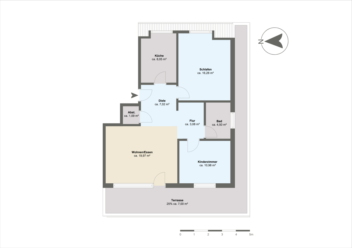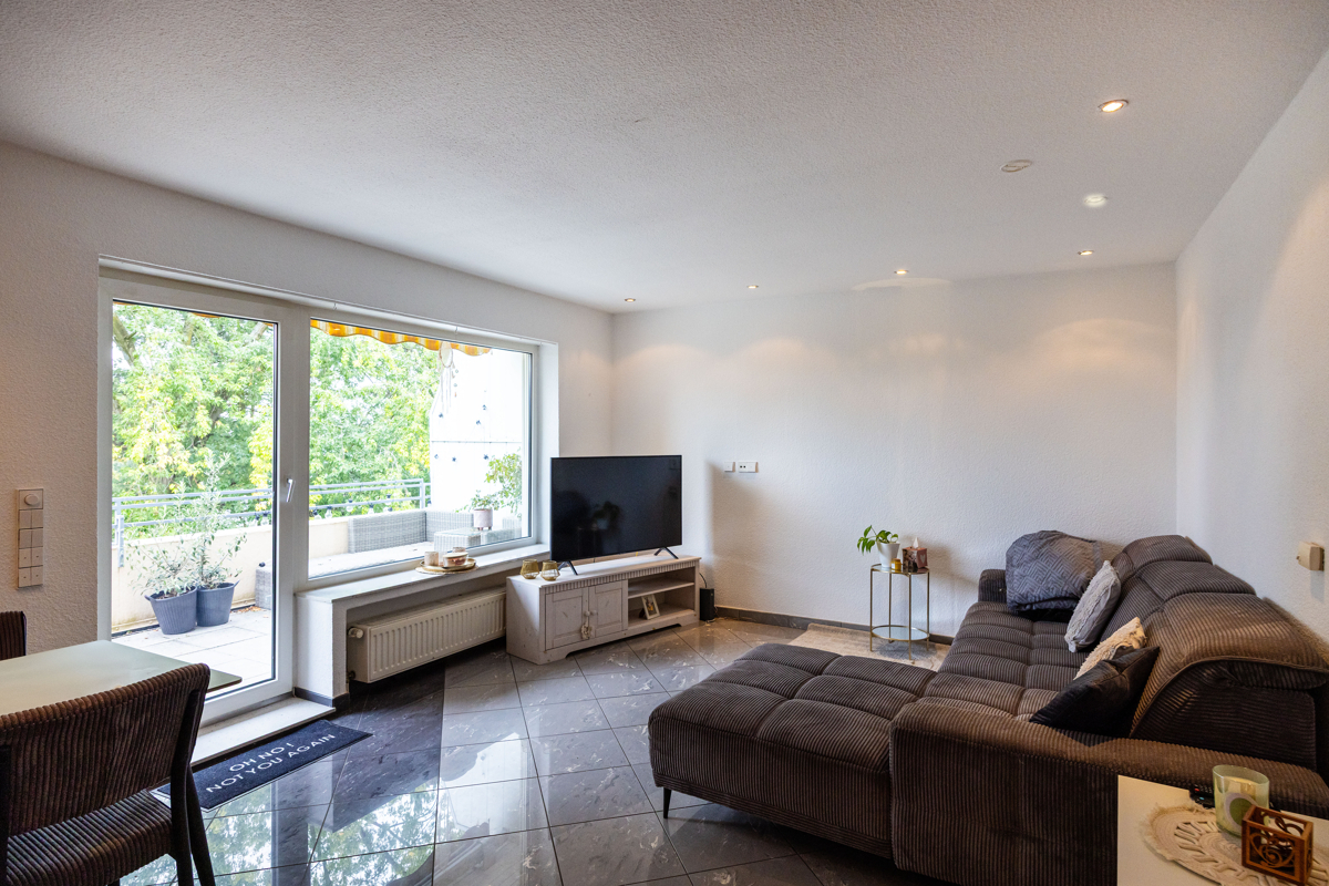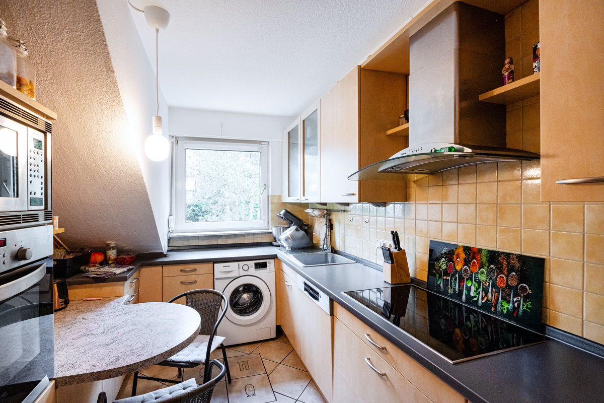 Diese gepflegte Dachgeschosswohnung besticht durch einen außergewöhnlichen, gut durchdachten Grundriss und eine tolle Dachterrasse mit beeindruckendem Weitblick. Auf 79 m² entfaltet sich eine harmonische Kombination aus privaten Rückzugsbereichen und offenen, großzügigen Wohnflächen – ideal für moderne Lebensansprüche. Der besondere Charme dieser Wohnung liegt im durchdachten Layout, das private Bereiche von offenen, gemeinschaftlich genutzten Räumen geschickt trennt. Der offen gestaltete Eingangsbereich führt direkt in den großzügigen Wohn-/Essbereich. Hier genießt man nicht nur viel Licht, sondern auch den direkten Zugang zur Dachterrasse. Die angrenzende, separate Küche ist kompakt und funktional gestaltet. Die Zimmer teilt sich in zwei separate Schlafräume auf. Das größere Schlafzimmer bietet ausreichend Platz für ein großes Bett und einen Kleiderschrank, während das zweite Zimmer ideal als Kinderzimmer oder Büro nutzbar ist. Das Tageslichtbad ist praktisch mit Dusche und Wanne ausgestattet. Zwischen dem Eingangsbereich und den Schlafräumen befindet sich der Flur, der die private Zone der Wohnung von den offenen Bereichen abgrenzt.Location