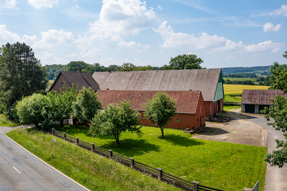 Erstmalig um 1500 urkundlich erwähnt bietet die Hofstelle nach erfolgten Umbauten und Erweiterungen heute ein Wohnhaus mit 340 m² Wfl., aufgeteilt auf 2 Wohnungen mit jeweils separatem Eingang und mehr als 845 m² Nutzfläche in Form von Ställen, Garagen und einer großen Scheune! Der Pflegezustand der Gebäude ist gut. Die Fenster wurden teilweise 2016 erneuert und die Etagenheizungen sind 2017 im Erdgeschoß und 2014 im Obergeschoß erneuert worden. Das Wohnhaus ist an den verklinkerten Seiten mit einer Einblasdämmumg versehen. Die Gebäude sind an das öffentliche Wassernetz angeschlossen, das Abwasser wird über eine Kleinkläranlage entsorgt, die bis Mai 2043 genehmigt ist. Geheizt wird mit Flüssiggas, der Tank ist gemietet. Ob Pferde- / Tierhaltung, generationsübergreifendes Wohnen oder den Wunsch nach nach viel Platz und Abstellfläche erfüllt die Hofstelle. Weiterer Vorteil ist die gute Erreichbarkeit von Bielefeld, Osnabrück oder Herford in Verbindung mit einem traumhaften Blick auf den Teutoburger Wald. Prüfen Sie selbst, wir zeigen es Ihnen gern!Lage
