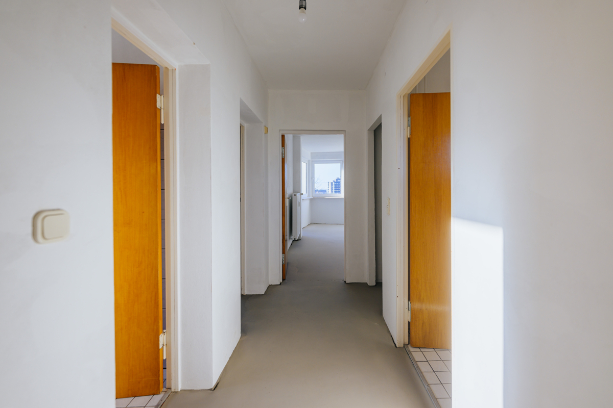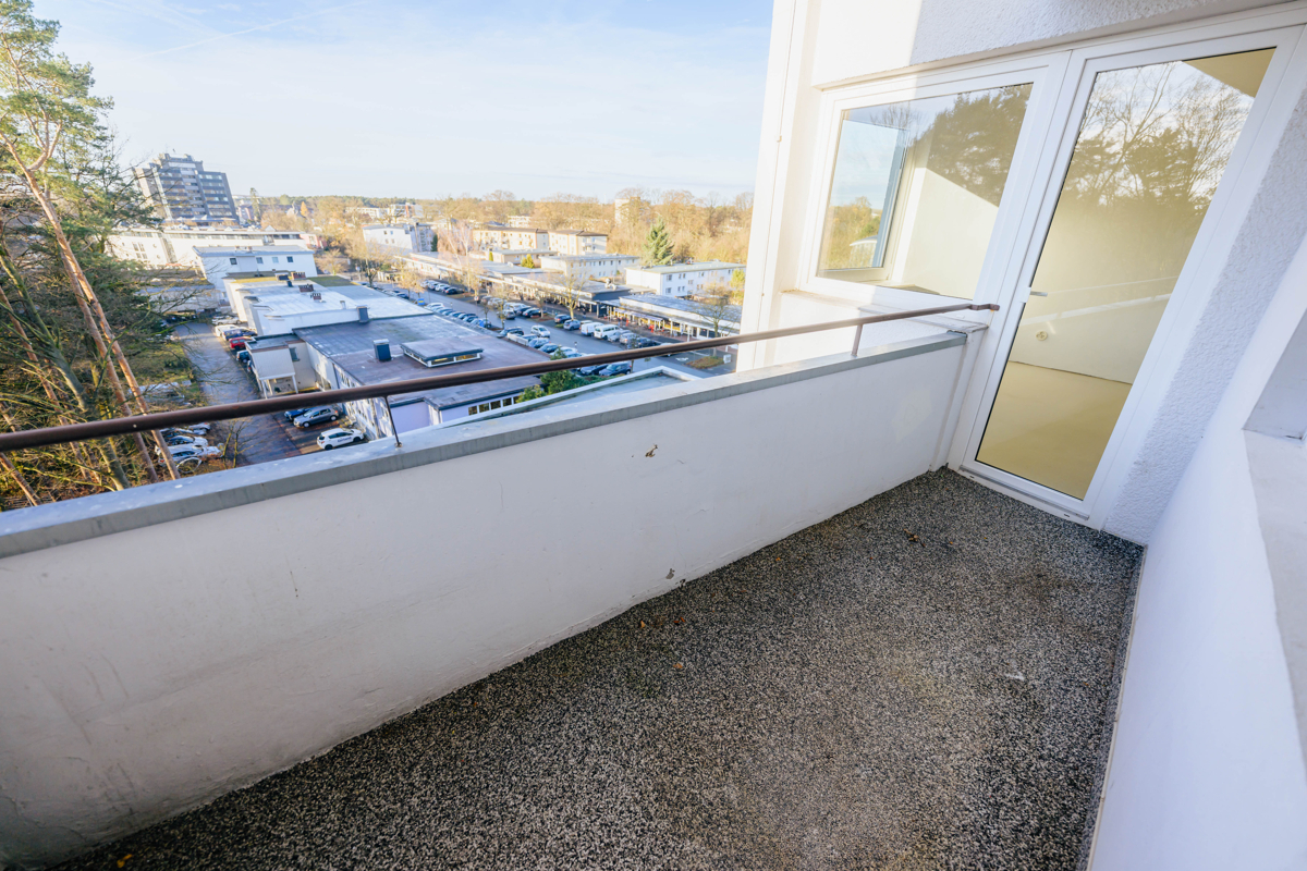 Diese 2-Zimmer Wohnung liegt in der 6. Etage und ist über einen Laubengang erreichbar. Die praktische Raumaufteilung eignet sich sowohl zur Eigennutzung als auch als solide Kapitalanlage. Der Wohn- und Essbereich bietet direkten Zugang zur südlich ausgerichteten Loggia mit schönem Blick ins Grüne. Ein weiteres gut geschnittenes, helles Zimmer dient ideal als Schlafzimmer. Vom Flur aus gelangen Sie in die Küche sowie in das Badezimmer mit Fenster, Duschwanne und Anschluss für eine Waschmaschine. Ein kleiner Abstellraum ist ebenfalls vom Flur aus begehbar und wir durch einen kleinen Kellerraum ergänzt. Die Wohnung bietet eine gute Grundlage – mit kleinen Renovierungen lässt sich die Wohnung schnell beziehen.Lage
