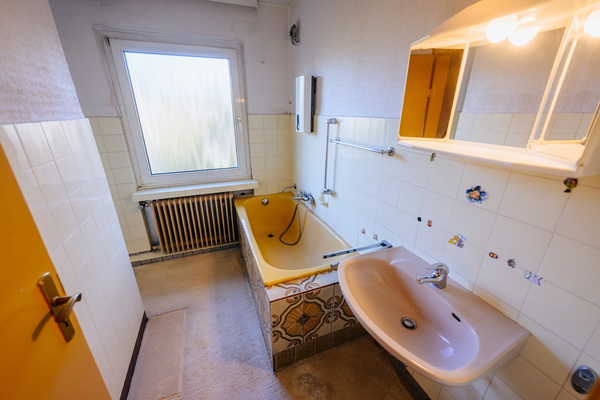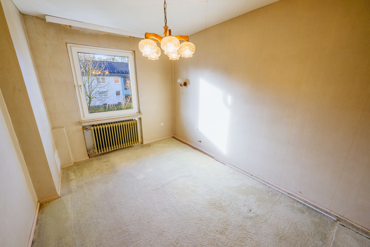 Auf einem nicht einsehbaren Grundstück befindet sich dieses stark renovierungsbedürftige Reihenendhaus, ideal für diejenigen, die Raum für Ihre eigenen Ideen suchen. Mit 102 m² Wohnfläche, klassischer Aufteilung mit 4 Zimmern sowie einem bereits gedämmten Giebel ist es eine solide Basis für Umbau- und Modernisierungspläne. Einplanen sollten Sie Maler- und Bodenbelagsarbeiten, die Sanierung der Sanitärbereiche und eine Erneuerung der Elektrik, auch energetische Optimierungen wie z.B. der Austausch von Fenstern oder das Dämmen der obersten Geschossdecke bieten sich an. Lohnenswerte Renovierungen, die nicht nur das Wohlbefinden erhöhen, sondern auch den Wert der Immobilie langfristig steigern. Eine Garage ergänzt das Angebot.Lage