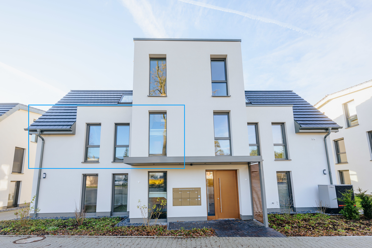 Erstbezug in stylischer Neubauwohnung mit "KfW 40 EE Standard", Terrasse & Garten oder großzügigem Balkon. Hochwertige Ausstattung in moderner Architektur, Komfort durch Barrierefreiheit und eine ausgezeichnete Energieeffizienz. Ideal für alle, die Wert auf Qualität, Design und geringe Nebenkosten legen. Technische Highlights im Überblick: - Modernste Haustechnik und optimale Wärmedämmung - Personenaufzug auf jede Ebene - PV-Anlage - Luft-Wasser-Wärmepumpe - Fußbodenheizung - 3-Fach-Wärmefunktions- und Isolierverglasung - elektrische Raffstores an allen Fenstern Helles und offenes Wohnkonzept: Der großzügige Wohn- Ess- und Kochbereich mit direktem Zugang zur Terrasse mit Gartenanteil schafft Lebensqualität. Das Schlafzimmer lässt sich perfekt möblieren und das dritte Zimmer bietet weitere, vielseitige Nutzungsmöglichkeiten als Büro, Gäste- oder Kinderzimmer. Wohndetails und Ausstattungsmerkmale: - Fester Kfz-Stellplatz vor dem Haus - Hochwertiger und pflegeleichter Vinylboden sowie großformatige Fliesen - Bodentiefe Fenster - Stilvolles Bad mit ebenerdiger Dusche - Gäste WC - Eigener Kellerraum Diese Wohnung bietet nicht nur ein modernes und stilvolles Ambiente, sondern überzeugt auch durch ihre energetische Bauweise und ihre durchdachte Ausstattung – ideal für alle, die Nachhaltigkeit mit Wohnkomfort verbinden möchten.