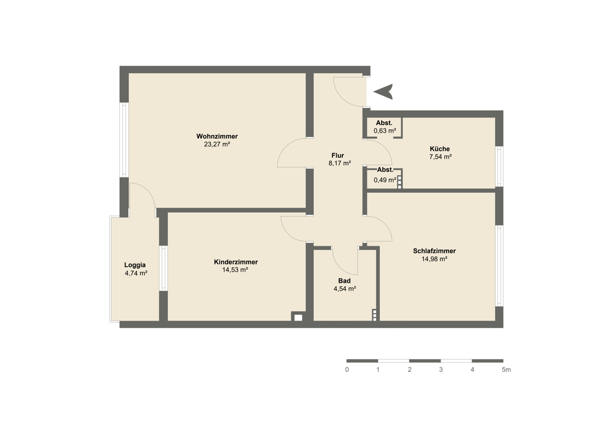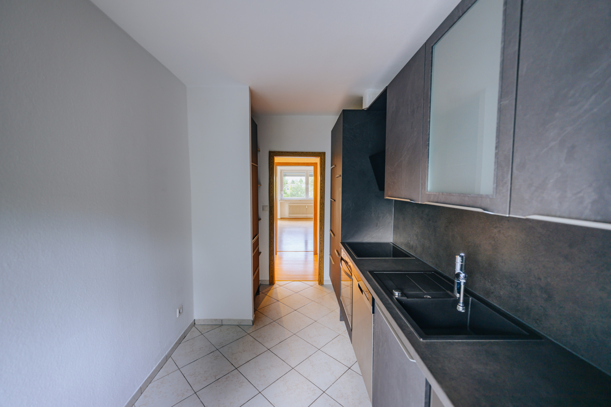 In einer Sackgasse gelegen befindet sich diese gepflegte Eigentumswohnung in einer soliden Wohnanlage mit 6 Wohnung á 3 Eingängen. Durch gut geschnittene Räume lässt es sich bestens möblieren und profitiert zudem von einer optimalen Belichtung. Das weiß geflieste Bad ist mit einer Duschwanne ausgestattet. Das Wohnzimmer und die Schlafräume bilden durch weiß gestrichene Wände und einem schlichten Fußboden ein stimmiges, zeitloses Gesamtbild. Eine moderne dunkle Einbauküche ist im Kaufpreis enthalten - hier ist ebenfalls Platz für eine kleine Essecke. Die Süd-West-Loggia ist zum ruhigen Garten ausgerichtet.Lage