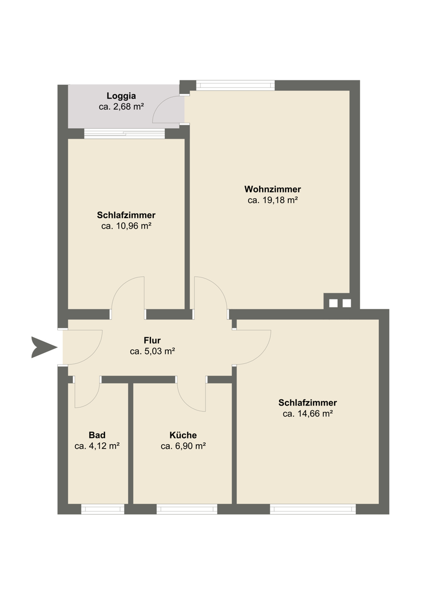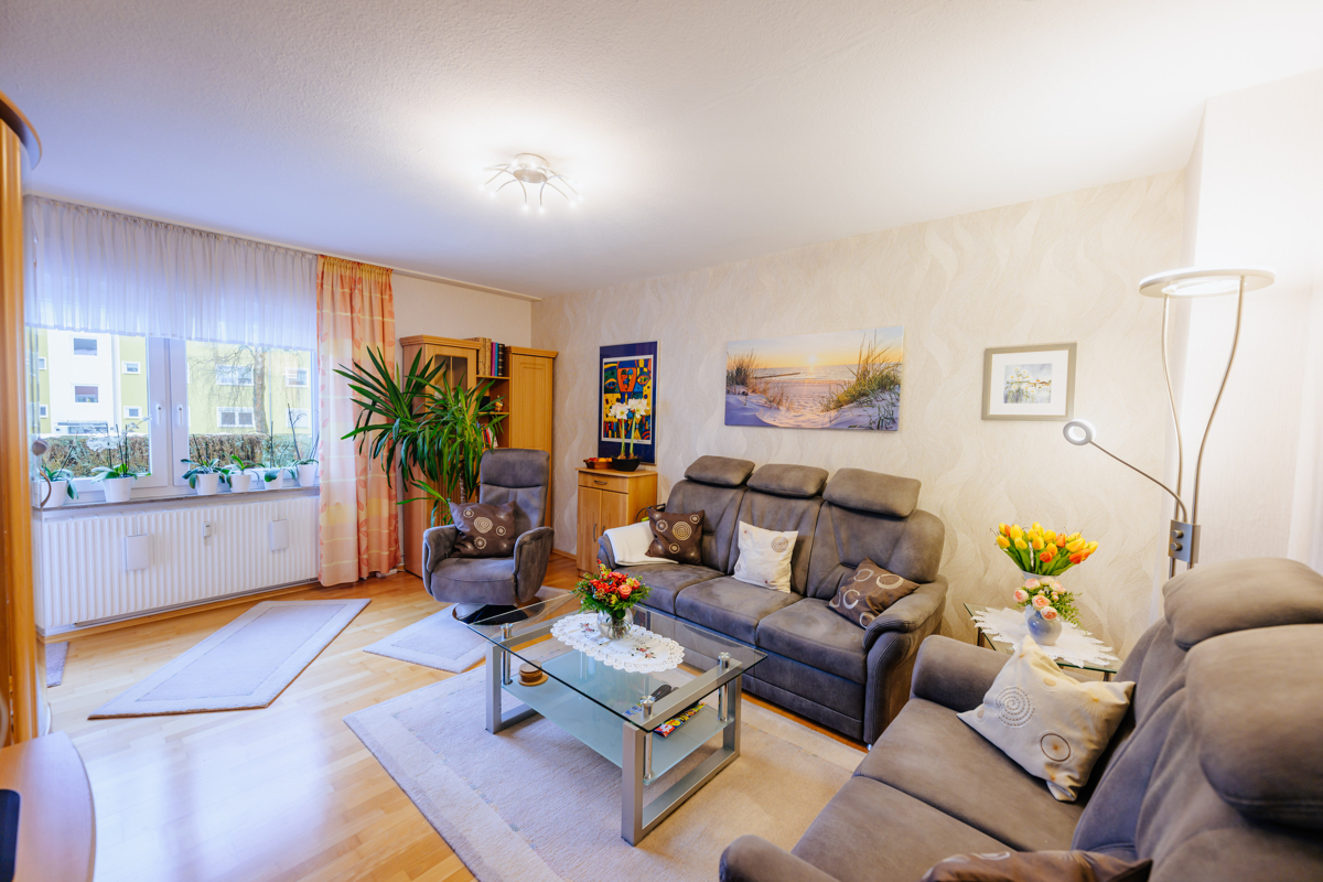 Diese Erdgeschosswohnung befindet sich in einem ruhigen, gepflegten Gebäude mit nur vier Parteien im Hauseingang. Die Eigentümergemeinschaft hat bereits in die Zukunft investiert: Die Fassade sowie die oberste Geschossdecke wurden gedämmt, das Gebäude gestrichen und die Haustüren erneuert. Die Wohnung selbst überzeugt durch einen durchdachten Grundriss. Vom ca. 20 m² großen Wohnzimmer aus gelangt man auf die Loggia. Zwei weitere gut geschnittene Zimmer ergänzen das Raumangebot. Das Badezimmer ist mit einer Dusche ausgestattet und verfügt über ein Fenster. Zusätzlichen Stauraum und Komfort bieten zwei zur Wohnung gehörende Kellerräume, von denen einer über Anschlüsse für Waschmaschine und Trockner verfügt.Lage