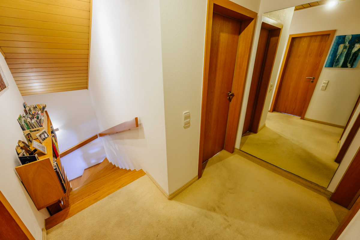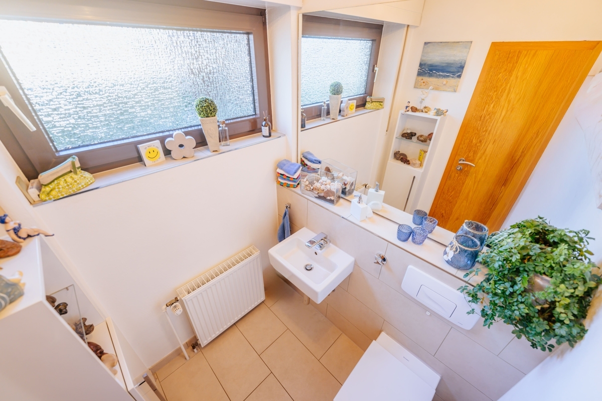 Das Reihenmittelhaus einer 4er-Reihe liegt ruhig in einer 30er Zone auf einem schönen Süd-Grundstück mit ansprechend gestaltetem Garten. Das Haus selbst präsentiert sich in einem 1A-Pflegezustand. Das Erdgeschoss, teilweise mit Fußbodenheizung ausgestattet, überzeugt mit einem großzügigen Wohn-/ Essbereich mit gemütlichem Kaminofen und angrenzender, moderner Küche inkl. hochwertiger Einbauküche und dem Gäste-WC. Im Obergeschoss befinden sich ein Schlafzimmer mit Ankleide, zwei großzügige Kinderzimmer und das baujahrestypische Badezimmer mit Dusche, Wanne und Doppelwaschbecken. Der teilweise beheizte Vollkeller mit einer Deckenhöhe von 2,25 m bietet neben Abstellfläche und Sauna weitere Möglichkeiten. Eine Außentreppe schafft die Verbindung zum Garten. Ein überzeugendes und gemütliches Haus in guter Wohnlage.Lage