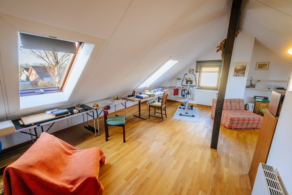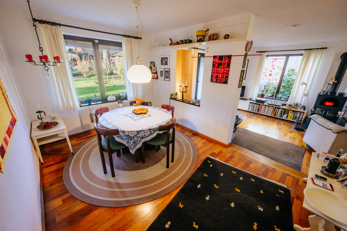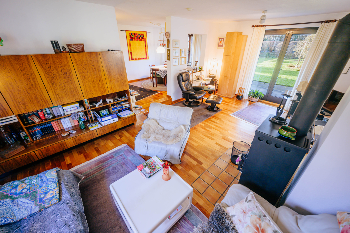 Dieses gepflegte Reihenendhaus einer dreiteiligen Häuserreihe befindet sich in ruhiger und begehrter Wohnlage innerhalb einer verkehrsberuhigten 30er-Zone. Das sonnige Süd-/West-Grundstück überzeugt mit einem liebevoll und ansprechend gestalteten Garten, der zu entspannten Stunden im Freien einlädt. Das Haus präsentiert sich in einem ausgezeichneten Pflegezustand und bietet ein durchdachtes Raumkonzept für die Familie. Im Erdgeschoss bildet der großzügige Wohn- und Essbereich das Herzstück des Hauses. Der Kamin sorgt für eine behagliche und gemütliche Atmosphäre, während die Küche sowie ein Gäste-WC das Raumangebot auf dieser Ebene sinnvoll ergänzen. Im Obergeschoss stehen ein großes Schlafzimmer sowie zwei helle Kinderzimmer zur Verfügung. Darüber hinaus befinden sich hier ein praktischer Abstellraum sowie das Tageslichtbad, das mit Dusche, Badewanne und Fenster ausgestattet ist. Das Dachgeschoss verfügt über einen großzügigen Raum sowie einen Trockenboden mit Heizungsanlage. Diese Flächen sind als Nutzfläche ausgewiesen und bieten zusätzliche, vielseitig nutzbare Möglichkeiten. Insgesamt handelt es sich um ein äußerst überzeugendes Zuhause mit hohem Wohlfühlfaktor in guter Wohnlage – ideal für Familien oder Paare, die Wert auf Ruhe, Qualität und ein angenehmes Wohnumfeld legen.Lage