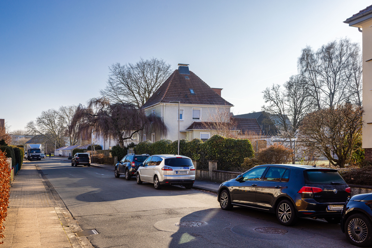 Das Grundstück liegt im beliebten Bielefelder Stadtteil Gellershagen – einer der gefragtesten Wohnlagen im Bielefelder Westen nahe der Universität. Das Umfeld ist geprägt von einer angenehmen Mischung aus ruhiger Wohnatmosphäre, gepflegter Nachbarschaft und einer sehr guten urbanen Anbindung. Einkaufsmöglichkeiten für den täglichen Bedarf, Bäckereien, Cafés sowie ärztliche Versorgung befinden sich in kurzer Distanz und sind bequem erreichbar. Auch Bildungseinrichtungen, Kindergärten und Freizeitangebote liegen im nahen Umfeld und machen die Lage besonders attraktiv für Paare, Familien und Berufstätige. Die Anbindung an den öffentlichen Nahverkehr ist hervorragend: Bus- und Stadtbahnhaltestellen sind fußläufig erreichbar und ermöglichen eine schnelle Verbindung in die Bielefelder Innenstadt sowie zu den umliegenden Stadtteilen. Gleichzeitig bietet die Nähe zu Grünflächen und Erholungsräumen einen hohen Freizeit- und Erholungswert. Insgesamt überzeugt die Lage durch ihre gelungene Kombination aus zentraler Erreichbarkeit, gewachsener Infrastruktur und hoher Wohnqualität.