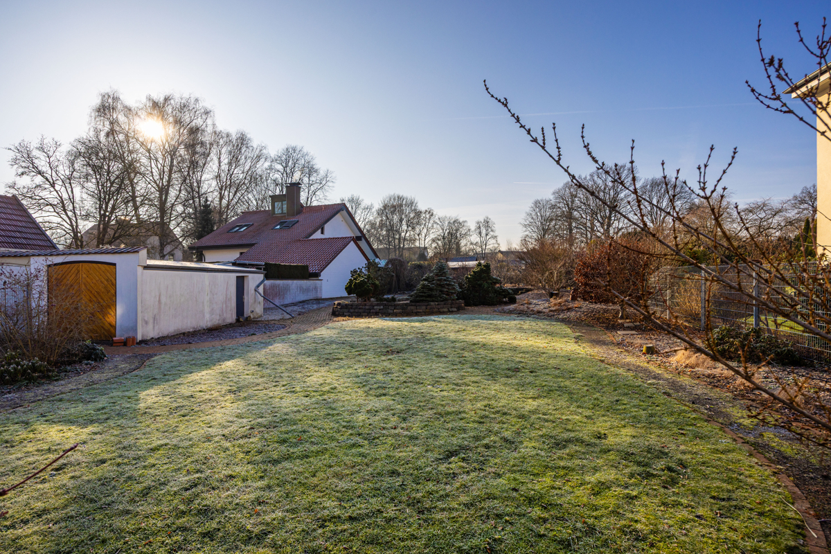 Dieses außergewöhnliche Grundstück stellt eine echte Rarität dar, da in dieser Lage selten bauträgerfreie Grundstücke verfügbar sind. Mit einer großzügigen Fläche von 989 m² bietet das Areal hervorragende Voraussetzungen für die Realisierung eines anspruchsvollen Wohnprojekts. Der geltende Bebauungsplan weist ein allgemeines Wohngebiet aus. Das großzügige Baufenster von ca. 14 m Breite und ca. 14 m Tiefe erlaubt die Bebauung mit zwei Vollgeschossen sowie einem Sattel- oder Walmdach mit einer Dachneigung von 30–35°. Dadurch eröffnet sich die Möglichkeit zur Errichtung eines repräsentativen Wohnhauses mit etwa 300 m² bis 340 m² Wohnfläche. Eine Begrenzung der Nutzungseinheiten ist derzeit nicht ersichtlich, was zusätzliche Flexibilität bei der Planung bietet. Die infrastrukturellen Voraussetzungen sind hervorragend: Strom-, Wasser- und Gasleitungen befinden sich bereits in der Straße, wobei Strom sogar schon auf dem Grundstück anliegt. Das Grundstück verfügt über eine 23 m tiefe Brunnenbohrung. Laut Erschließungskostenbescheid der Stadt Bielefeld sind keine weiteren Erschließungskosten zu erwarten.