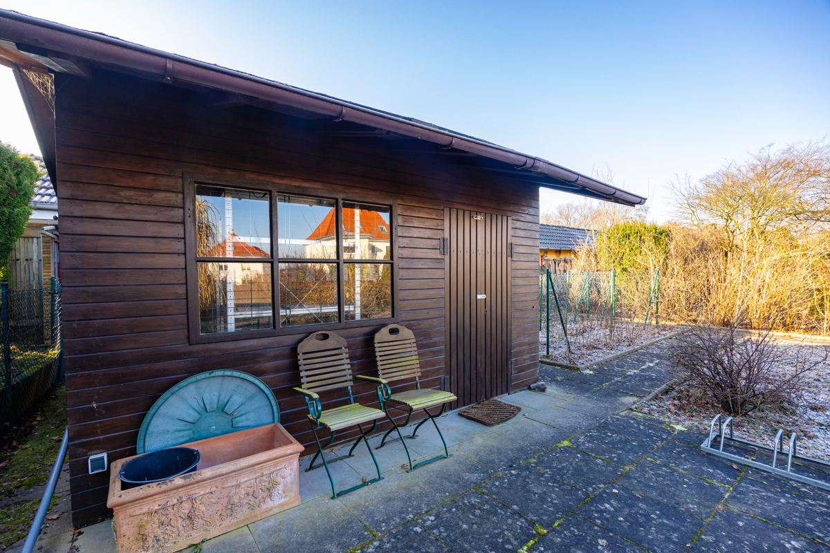 Auf diesem Grundstück können Sie Ihr langersehntes Eigenheim errichten. Vorteilhaft für die Bauphase das bereits vorhandene hochwertige Gartenhaus