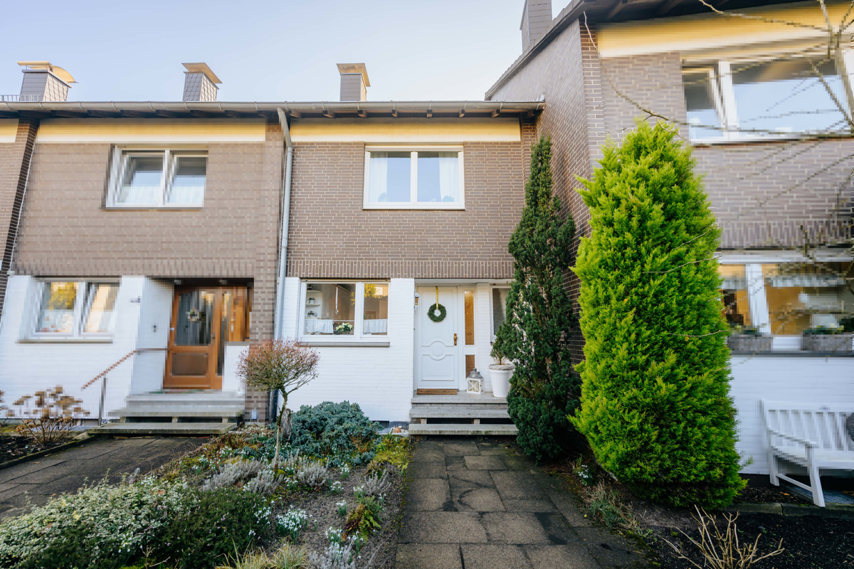 Dieses gepflegte Reihenmittelhaus vereint durchdachte Funktionalität mit einer behaglichen Wohnatmosphäre. In einer angenehm ruhigen Nachbarschaft gelegen, bietet die Immobilie auf ca. 87 m² Wohnfläche den idealen Raum für Paare oder die kleine Familie. Die Highlights im Überblick: Licht und Raum: Herzstück des Erdgeschosses ist der großzügige Wohn- und Essbereich. Dank der großen Fensterfronten genießen Sie hier ein helles, freundliches Ambiente mit direktem Blick in den eigenen Garten. Privatsphäre im Grünen: Vom Wohnbereich gelangen Sie direkt auf die überdachte Terrasse. Der angrenzende, nicht einsehbare Garten ist eine kleine Wohlfühloase, die an warmen Tagen zum Entspannen und Spielen im Freien einlädt. Praktisches Raumkonzept: Die separate Küche bietet Platz für gemeinsames Kochen, während ein Gäste-WC den Komfort im Erdgeschoss vervollständigt. Rückzugsorte im Obergeschoss: Hier erwarten Sie ein großzügiges Elternschlafzimmer sowie zwei weitere Zimmer, die sich flexibel als Kinderzimmer, Home-Office oder Gästezimmer nutzen lassen. Das Badezimmer ist baujahrestypisch mit Dusche und Wanne gestaltet und bietet eine solide Basis für Ihre Gestaltungsideen. Das "Plus" an Platz: Die Ausbaureserve im Dachgeschoss. Ein besonderes Highlight ist das Dachgeschoss: Hier schlummert eine attraktive Ausbaureserve, die Ihnen wertvollen Raum bietet. Abgerundet wird dieses attraktive Angebot durch eine eigene Garage, die bereits im Kaufpreis enthalten ist und Ihnen lästige Parkplatzsorgen erspart.Lage