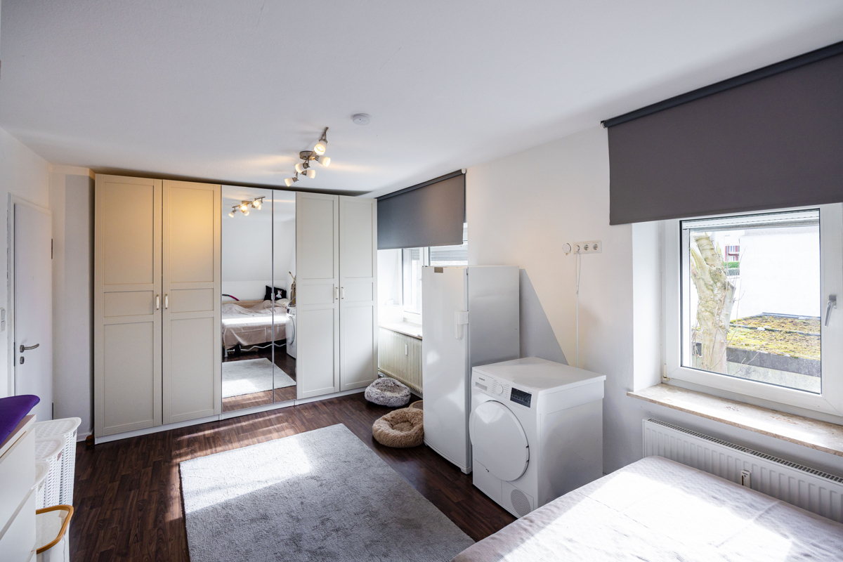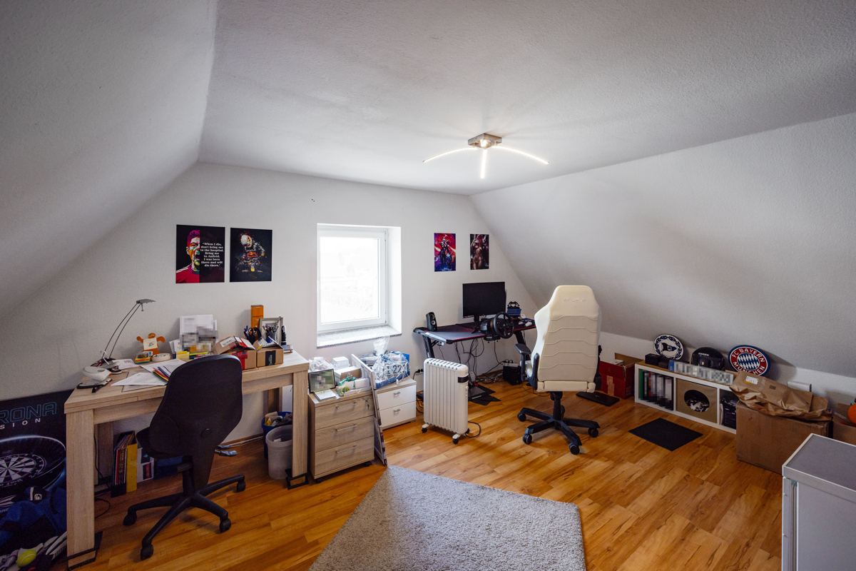 Das zentral gelegene Zweifamilienhaus bietet 2 Wohnungen mit je 4 Zimmern, Küche und Bad. Bestens geeignet für eine große Familie oder für Kapitalanleger zur weiteren Vermietung sowie den Investor, der in der Zukunft eine Neubebauung plant. Vorteile auf einen Blick: die Wohnung im OG wurde bereits renoviert und präsentiert sich mit hellen Türen, Laminatboden und einem aktuellen Bad mit bodentiefer Dusche. Hier steht im Spitzboden noch ein wohnlich ausgebauter Studioraum zur Verfügufng (Nfl.). Alle Fenster im Haus wurden bereits durch Kunststofffenster mit Jalousien ersetzt (unterschiedliche Baujahre). Geheizt wird mit einer Gas-Brennwerttechnik aus dem Jahr 2017. Eine Wallbox aus 2024 ist ein weiteres Plus. Eine Garage steht ebenfalls zur Verfügung. Beide Wohnungen sind bis Ende Juni noch vermietet. Dann ist das Haus komplett frei.Lage