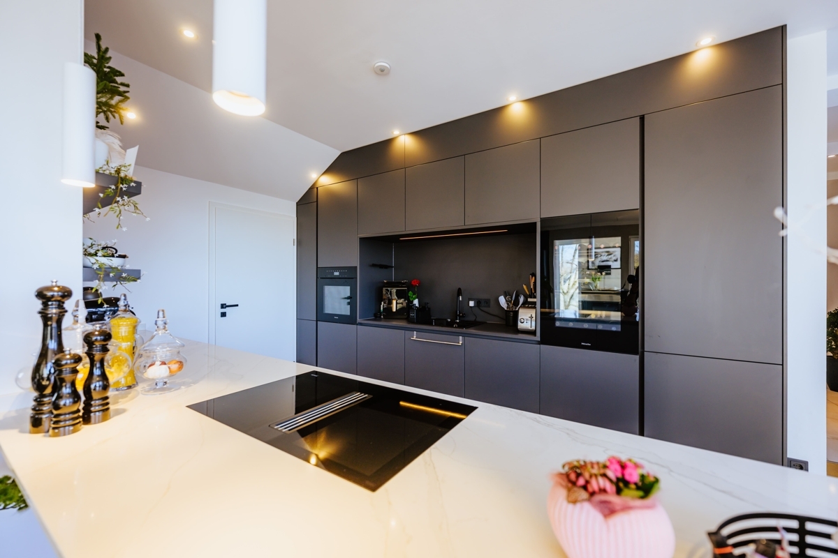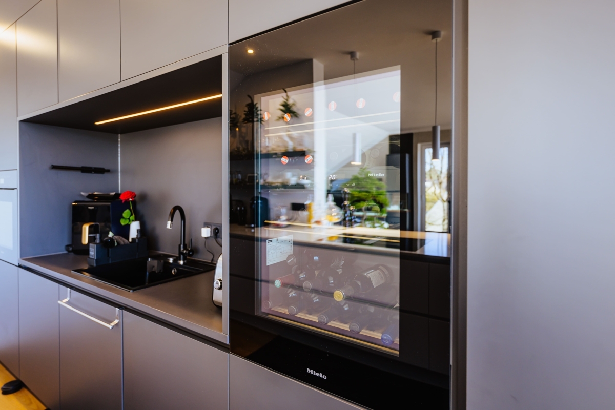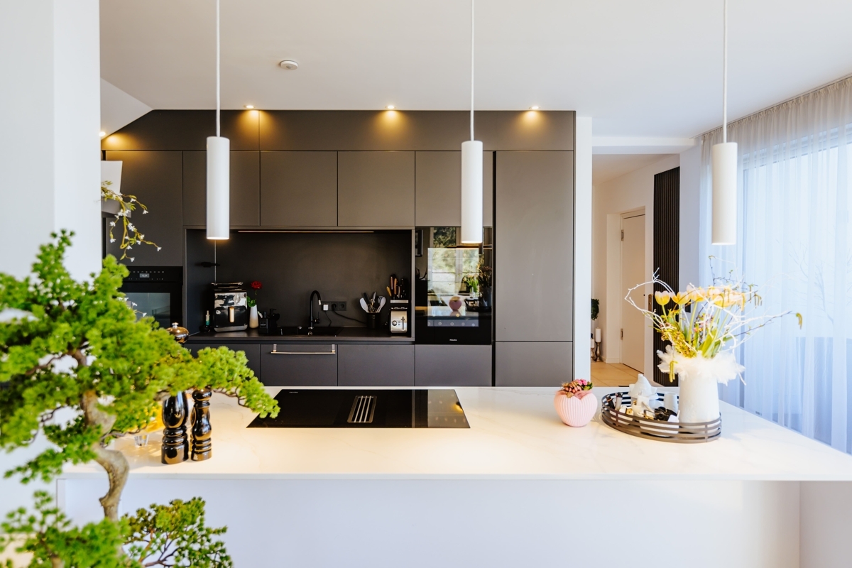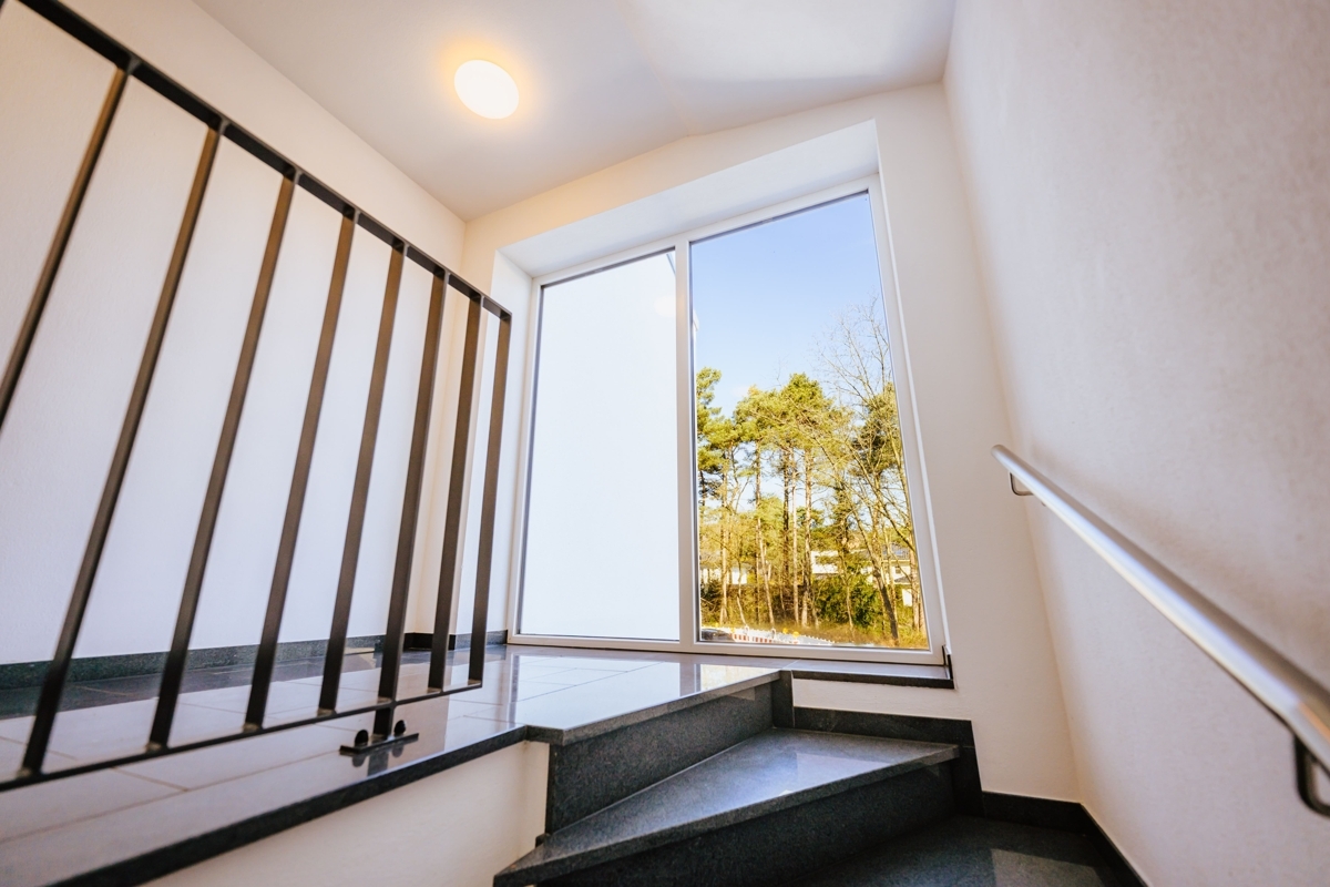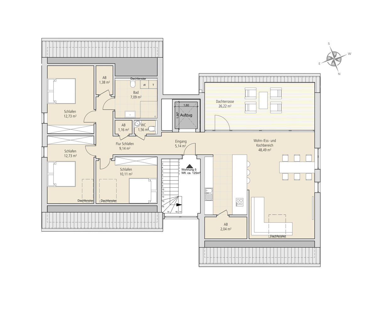 Diese außergewöhnliche Wohnung verbindet modernes Wohnen mit einem besonderen Maß an Komfort und Großzügigkeit. Schon die direkte Fahrt mit dem Aufzug in die Wohnung vermittelt ein exklusives Wohngefühl. Ein echtes Highlight ist die großzügige Südterrasse mit ca. 26 m², die Ihnen einen herrlichen Ausblick und viel Platz für sonnige Stunden im Freien bietet. Die Highlights im Überblick: Wohnen über den Dächern: das Herzstück der Wohnung ist der beeindruckende Wohn- und Essbereich. Lichtdurchflutet und offen gestaltet, entsteht hier durch die bodentiefe Fensterfront zur Terrasse eine ganz besondere Wohnatmosphäre mit viel Weite und Helligkeit. Ein Platz an der Sonne: die großzügige Südterrasse erweitert den Wohnraum auf angenehme Weise nach draußen und wird schnell zum Lieblingsplatz – ob für das Frühstück in der Sonne, entspannte Abendstunden oder gesellige Momente mit Gästen. Modernes Wohnkonzept mit Stil: die einseitig offene Küche fügt sich harmonisch in den Wohnbereich ein und unterstreicht den zeitgemäßen Grundriss. Die hochwertige Einbauküche sowie der direkt angeschlossene Vorratsraum sorgen dabei für eine ideale Kombination aus Design und Funktionalität. Hochwertige Ausstattung mit stimmigem Gesamtbild: Edler Parkettboden in den Wohnräumen und großformatige Fliesen in einem warmen Beigekonzept im Flur und Bad schaffen ein modernes und zugleich wohnliches Ambiente. Weiß gestrichene Vliestapeten und weiße Türen greifen das klare Farbkonzept des Hauses stilvoll auf und verleihen den Räumen eine elegante Ruhe. Komfort bis ins Detail: das Tageslichtbad mit bodengleicher Dusche präsentiert sich modern und einladend. Ergänzt wird der großzügige Grundriss durch ein separates Gäste-WC sowie zwei weitere Abstellräume, die im Alltag wertvollen Stauraum bieten. Diese Wohnung ist ideal für alle, die das Besondere suchen: ein Zuhause mit Charakter, Licht, Weitblick und einem Wohnkonzept, das Komfort und Ästhetik auf gelungene Weise vereint.Lage