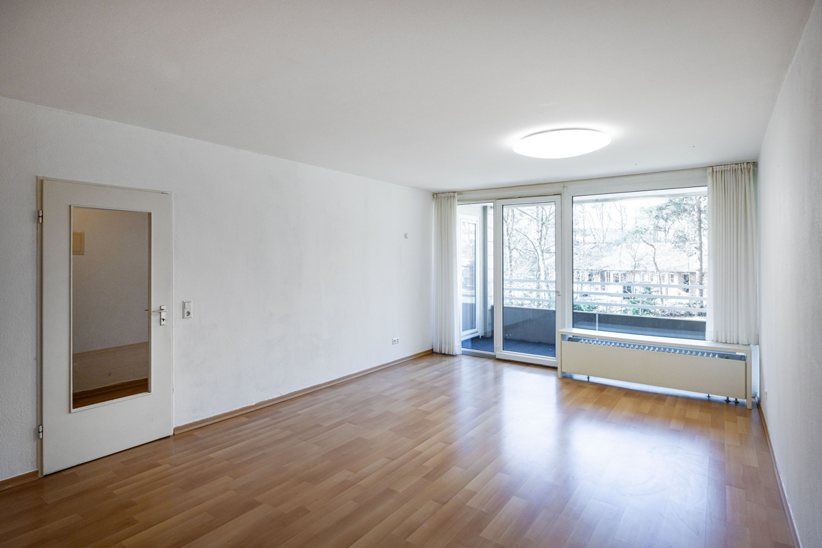 Diese gepflegte 2-Zimmer-Eigentumswohnung befindet sich in einer soliden und gut instand gehaltenen Wohnanlage und überzeugt mit einer sinnvollen Raumaufteilung, guten Lichtverhältnissen und einem schönen Blick ins Grüne. Highlights im Überblick: Wohn- und Essbereich mit Loggiazugang: Der großzügige Wohn- und Essbereich verfügt über ein modernes Hebe-/Schiebeelement mit Zugang zur sonnigen, überdachten Westloggia. Gut geschnittenes Schlafzimmer: Das 17 m² große, quadratische Schlafzimmer bietet beste Möbelierungsmöglichkeiten und ist mit einem hellen Laminatboden ausgestattet ebenfalls mit Zugang zur Loggia. Praktische Küchensituation: Die weiße Einbauküche ist im Kaufpreis enthalten und verfügt neben den Elektrogeräten auch über eine Waschmaschine. Helles Badezimmer: Sehr gepflegtes, Bad mit Wanne und Dusche mit grauen Fliesen. Durch den gepflegten Zustand der Wohnung und den attraktiven Angebotspreis eignet sich das Angebot sowohl zur Eigennutzung als auch zur Kapitalanlage.Lage