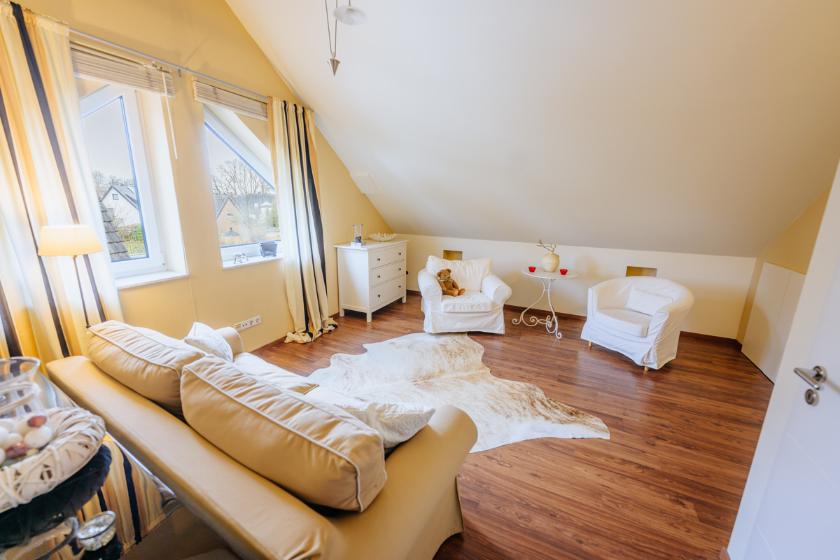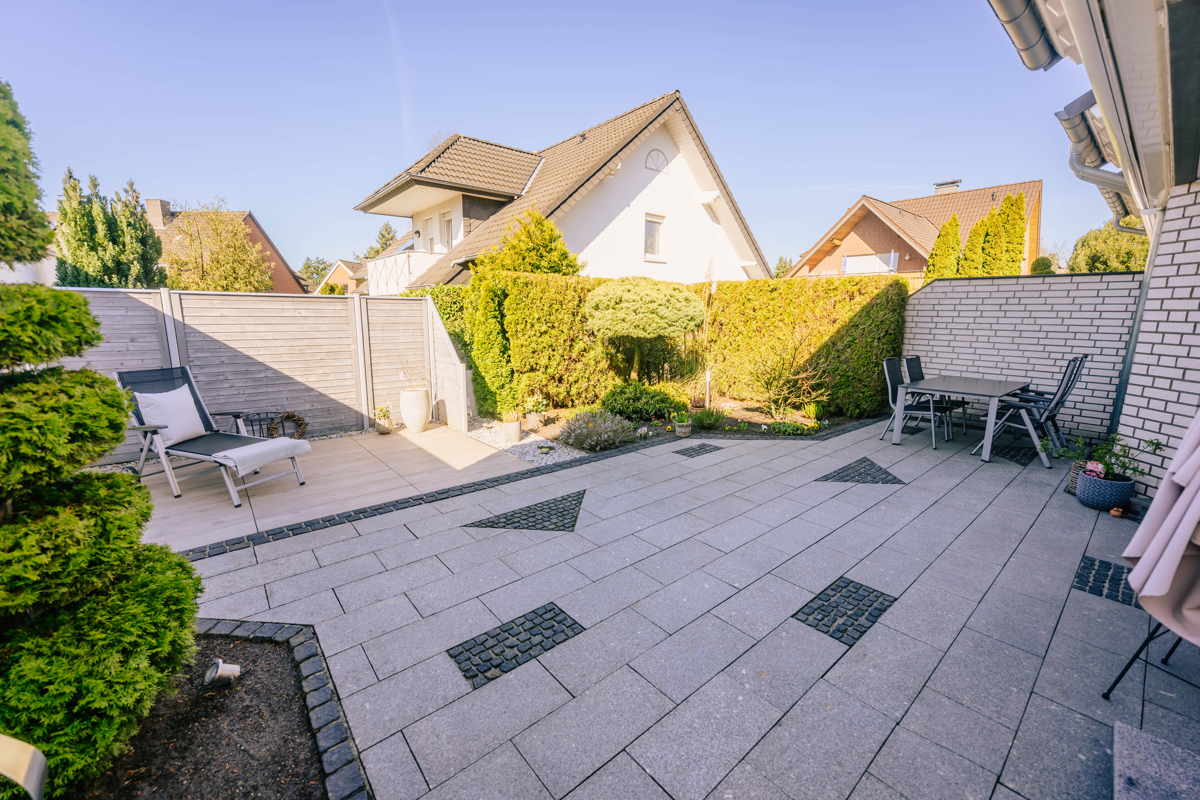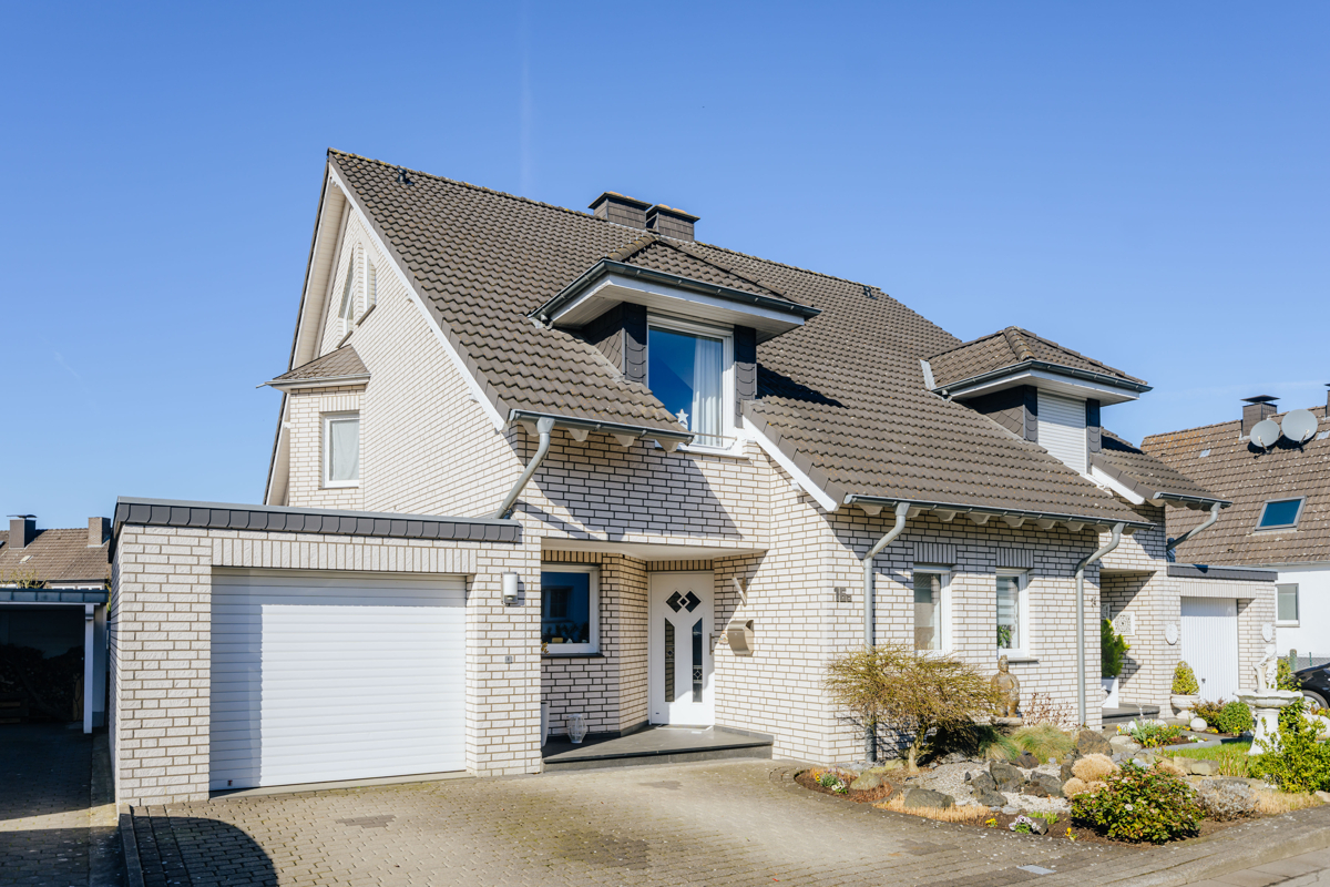 Diese stilvolle 5-Zimmer-Doppelhaushälfte überzeugt durch modernes Wohnen, eine durchweg harmonische Farbgestaltung, eine durchdachte Raumaufteilung sowie eine hochwertige Ausstattung. Das Haus präsentiert sich in einem top gepflegten und zeitgemäßen Zustand - hier steht dem Einzug nichts im Weg! Die Highlights im Überblick: Großzügiger Wohn- und Essbereich: Das Herzstück des Hauses bildet der helle und gut geschnittene Wohn- und Essbereich mit Erker. Die offene Gestaltung schafft viel Raum für gemeinsames Leben. Ein stilvoller, neuer Kamin sorgt nicht nur für eine besondere Atmosphäre, er setzt auch ein modernes Design-Highlight. Die Einbauküche: Die hochwertige und großzügig geplante, Hochglanz weiße Einbauküche ist schick und überzeugt mit durchdachten Details. Sie bietet viel Stauraum, moderne Elektrogeräte und ausreichend Platz, um gemeinsam zu kochen und zu essen. Durchdachtes Raumkonzept: Im Obergeschoss stehen drei gut geschnittene Zimmer zur Verfügung, die sich ideal als Elternschlafzimmer, Kinderzimmer oder Homeoffice nutzen lassen. Ergänzt wird diese Ebene durch einen praktischen Abstellraum. Ein besonderes Highlight ist der ausgebaute Spitzboden: hier befindet sich ein weiteres großzügiges, vollwertiges Zimmer (Nfl. 19 m²), welches nicht in der Wohnfläche enthalten ist . Praktische Einbauschränke nutzen die Dachschrägen optimal aus und schaffen zusätzlichen, gut integrierten Stauraum. Modernes Badezimmer: Das Badezimmer mit Tageslicht sticht mit einem tollen Schnitt sowie stylischen Gestaltung heraus. Es verfügt sowohl über eine große Badewanne als auch über eine bodentiefe Regendusche. Ergänzt wird das Bad durch ein Gäste-WC im Erdgeschoss. Viel Platz im Keller: Der Keller bietet mehrere Räume mit vielfältigen Nutzungsmöglichkeiten – ob als Hobbyraum, Stauraum oder Waschküche. Hier steht zusätzlicher Platz für individuelle Bedürfnisse zur Verfügung. Terrasse und Garten: Der Außenbereich überzeugt mit einer schön angelegten Terrasse mit Markise und einem geschmackvoll gestalteten Garten. Die Kombination aus Pflanzen und dekorativen Steinflächen sorgt für eine moderne Optik und schaffen einen pflegeleichten Garten. Diese Doppelhaushälfte überzeugt durch stilvolles Wohnen, eine gelungene Raumaufteilung und eine hochwertige Ausstattung – ein Zuhause, das modernen Komfort mit einer angenehmen Wohnatmosphäre verbindet.Lage