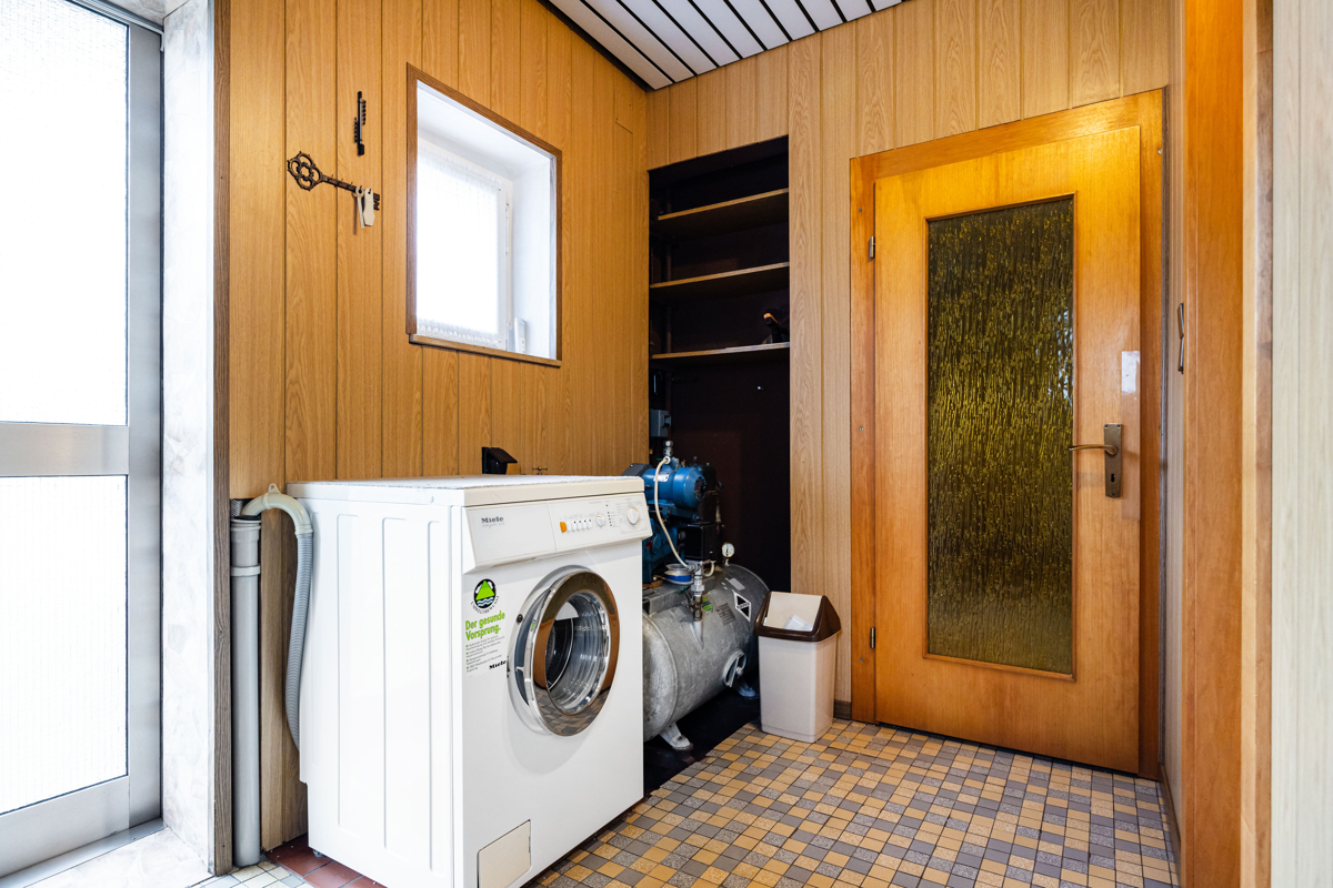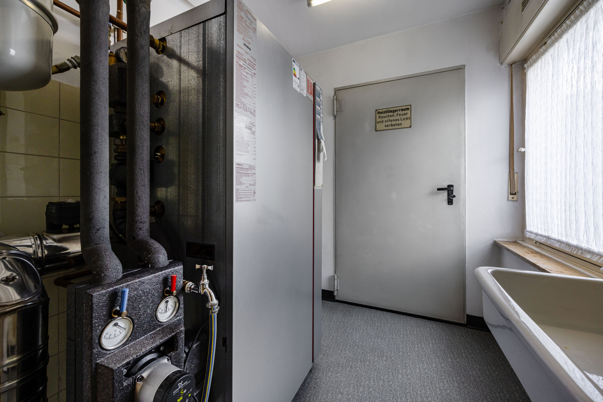 ein von außen begehbarer, angebauter Raum dient als Werkstatt und Abstellfläche. Bastler können sich hier voll entfalten und auch mal Krach machen. Eine Garage steht ebenfalls zur Verfügung. Eine Verbindung zwischen Haus und Garage lässt einen geschützten, gemütlichen Sitzplatz entstehen.