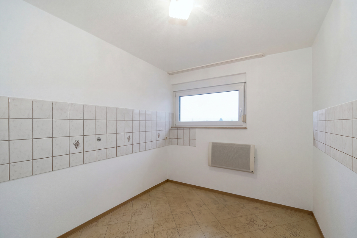 Das top gepflegte Mehrfamiliehaus macht schon von außen einen einladenden Eindruck. Mit dem Fahrstuhl geht es bequem in die 3. Etage und über einen Laubengang zur Wohnung. Die Wohnung punktet mit einer geräumigen Wohndiele, viel Licht und einem herrlichen Blick in den Bullerbach Grünzug. Der Wohn- Essbereich sowie das Schlafzimmer haben Zugang zur Südloggia. Ein weiterer Raum, Kinder- oder Gästezimmer, ist ebenfalls nach Süden ausgerichtet. Eine praktische Abstellmöglichkeit inform eines Wandschranks ist ebenfalls vorhanden sowie eine praktische Glasschiebetür in der Küche. Der Boden wurde mit hellen Fliesen verfliest. Das bereits erneuerte Bad erhielt eine bodentiefe Dusche mit Glasabtrennung und es wurde ein Waschmaschinenanschluß installiert. Die komplette Wohnung hat hellen Laminatboden und Kunststofffenster mit Jalousien.Lage