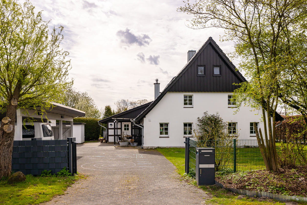 zusätzliche Gebäude wie Carport und praktische Abstellflächen bieten ausreichend Platz für Fahrzeuge, Hobby und Lagerung. Die großzügige Hoffläche sorgt für komfortables Parken und flexible Nutzungsmöglichkeiten.