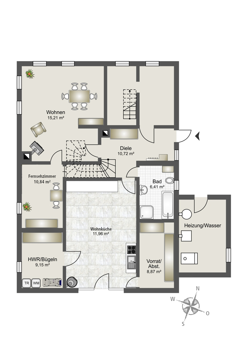 Hauswirtschaftsraum, Technikräume sowie zusätzliche Abstellflächen bieten praktische Ergänzungen für den Alltag und sorgen für ein durchdachtes Gesamtpaket.