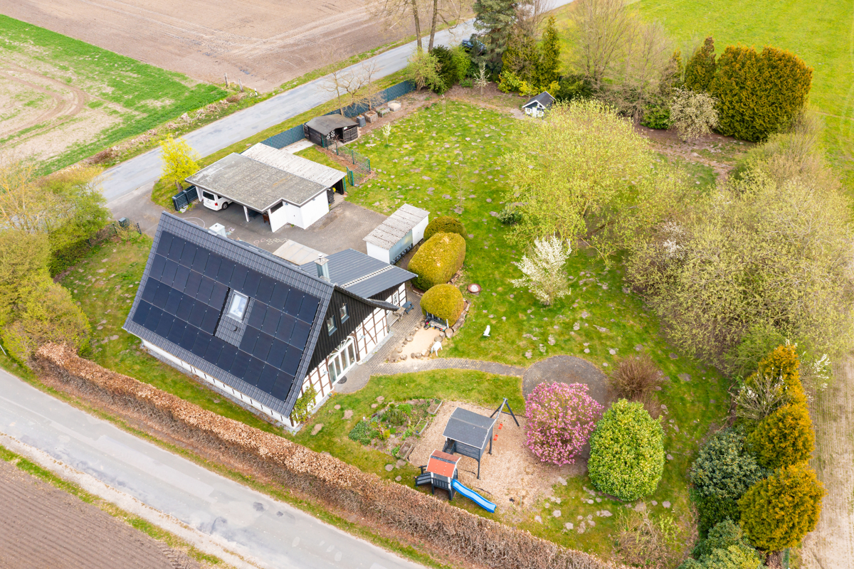das weitläufige Grundstück ist ein echtes Highlight dieser Immobilie. Umgeben von Feldern und Natur bietet es ein hohes Maß an Privatsphäre und zahlreiche Nutzungsmöglichkeiten – ob als Familiengarten, Spielbereich oder Rückzugsort. Ein liebevoll angelegter Gartenbereich, Spielmöglichkeiten für Kinder sowie großzügige Freiflächen unterstreichen die besondere Lebensqualität.